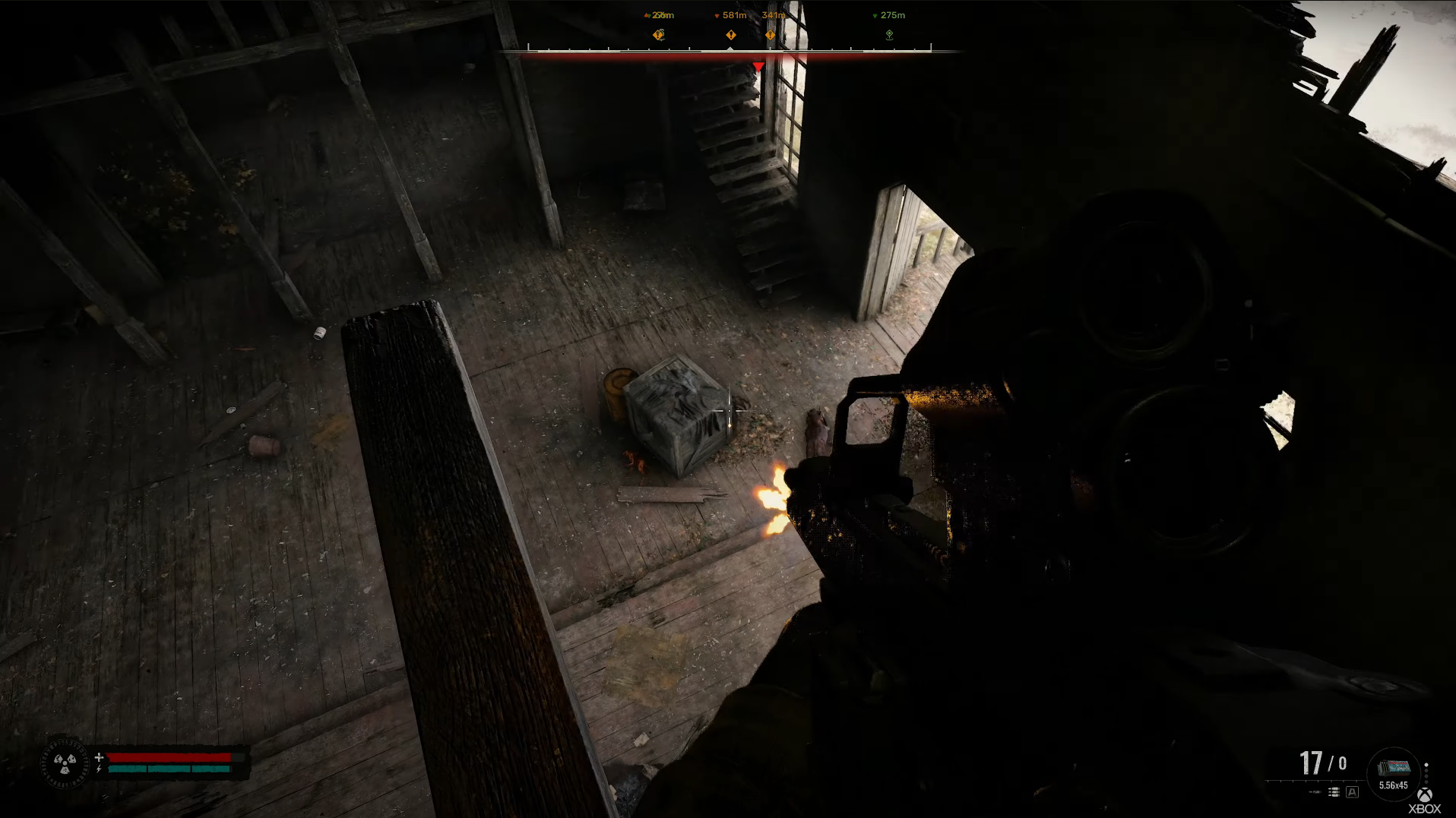 Кстати, к чему претензий нет, так это к анимациям боевых столкновений: бега, стрельбы, даже отдачи оружия (всего, кстати, видов огнестрела будет 35 видов на всю игру), реакции противников на попадания. Разве что анимации разрушения ящиков выглядят как ассет из магазина Unreal Engine — в предыдущих «Сталкерах» ящики и контейнеры разрушались по физике, распадались на отдельные доски, а теперь просто «взрываются» частицами дерева при ударе ножом. Поднимает артефакты сталкер Скиф, кстати, как джедай — даже без прикосновений!