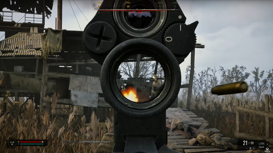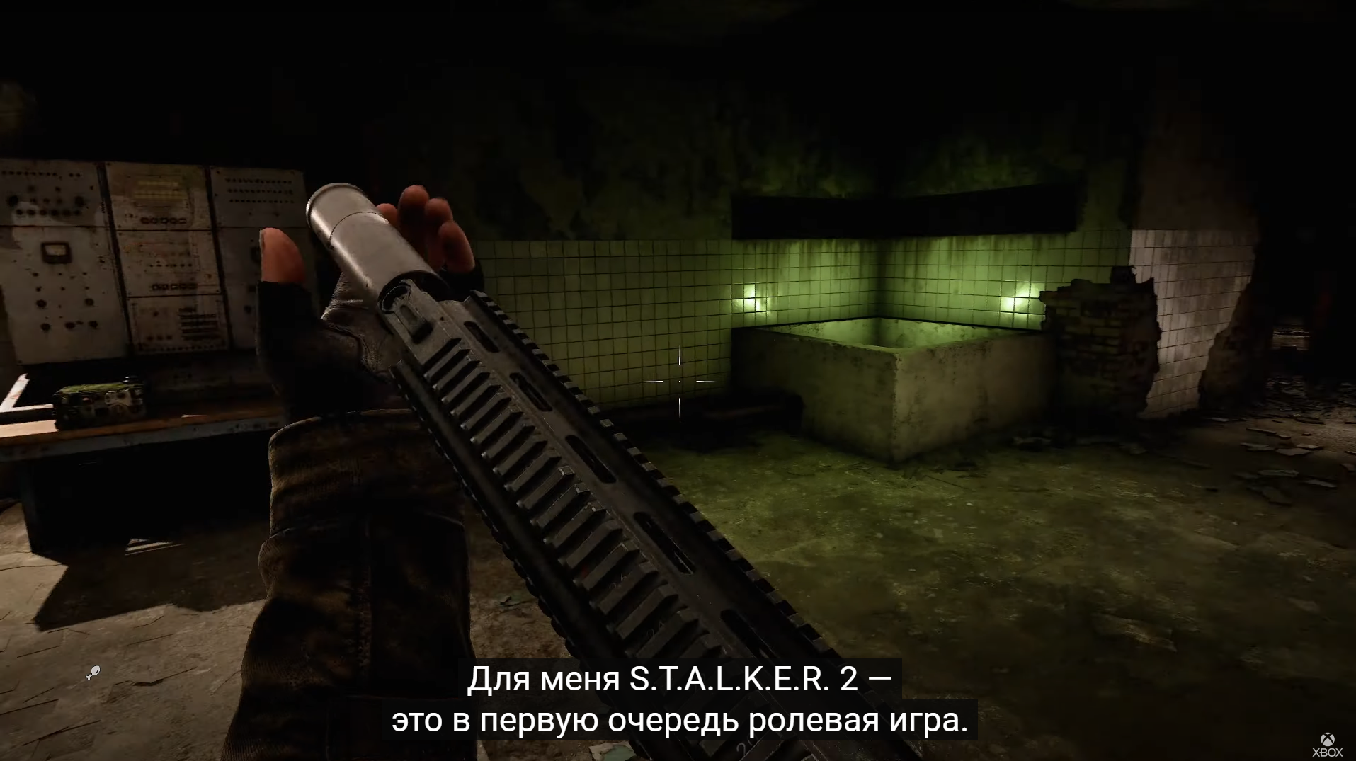 Хочется сразу отметить, что повествования в показанном отрезке игрового процесса идёт только через аудиодневники или записи других персонажей. При этом дальше по ролику разработчики будут делиться красивыми, неплохо поставленными кат-сценами с реальными актёрами и захватом движений — что является новинкой для серии S.T.A.L.K.E.R., — но никто их так и не покажет в реальном игровом процессе. Только какие-то контекстные анимации героя, вроде поедания батона, применения бинта, поедания консеров и так далее. Подобрать отрезок игрового процесса, который можно было бы показать без монтажа и перебивок на лица разработчиков так сложно? Судя по всему, в текущей версии — да.