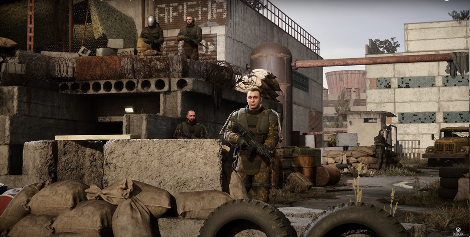 Например, блокпосты выглядят так, будто это сцены из редактора Unreal Engine 5, без реалистичного и динамического света. Особенно хорошо это видно на персонаже по центру и вокруг него — как будто на него под специальным углом направили искусственный свет прожектора. Нереалистичное белое свечение никак не бьётся с освещением заходящего солнца, которое есть на других объектах. Смотреть на задний план в принципе не рекомендуется, особенно правее центрального «долговца» — там тени на объектах, а значит и объём, отсутствуют в принципе. Всё выглядит как фанатская поделка в редакторе «за вечер».