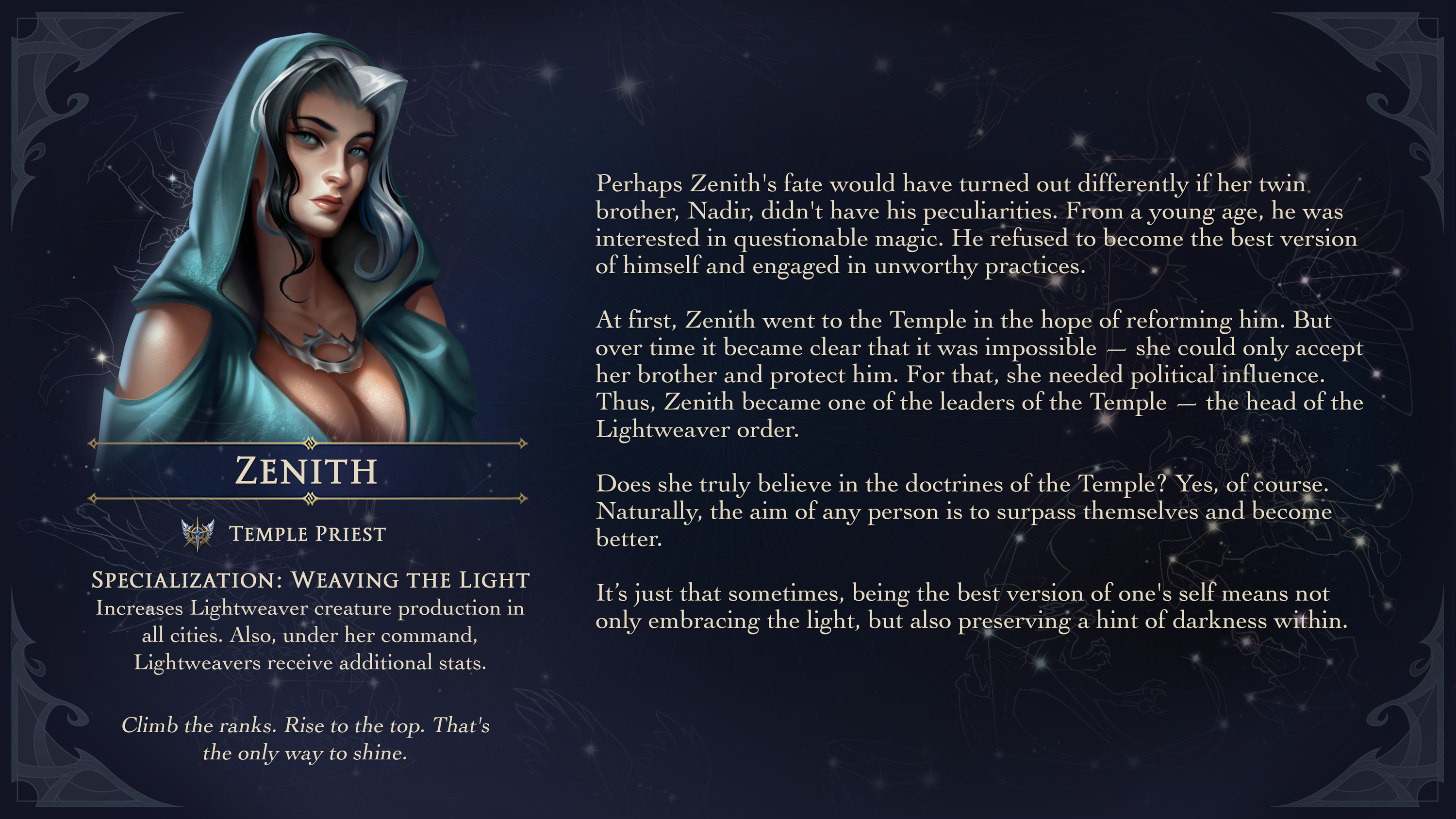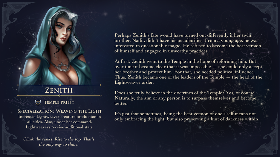 Герои фракции имеют одну из специализаций: Священники или Рыцари.