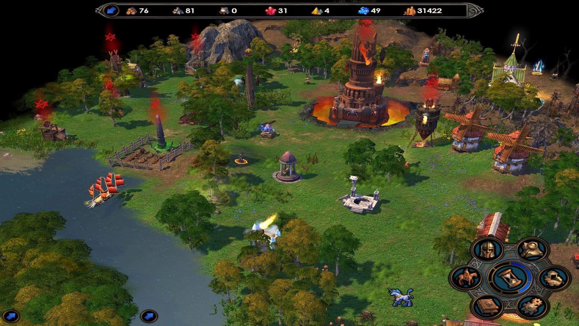 Игра остаётся верна традициям: на карте можно найти знакомые ресурсы, лесопилки и шахты, охраняемые нейтральными монстрами. Ресурсные строения легко узнаваемы, как и башни для осмотра окрестностей или хижины ведьм. Появились и новые объекты, не встречавшиеся в предыдущих частях, но общий стиль классических Героев сохранён превосходно. Детали, такие как курьи ножки, выглядывающие из-под хижин ведьм, добавляют игре очарования.
