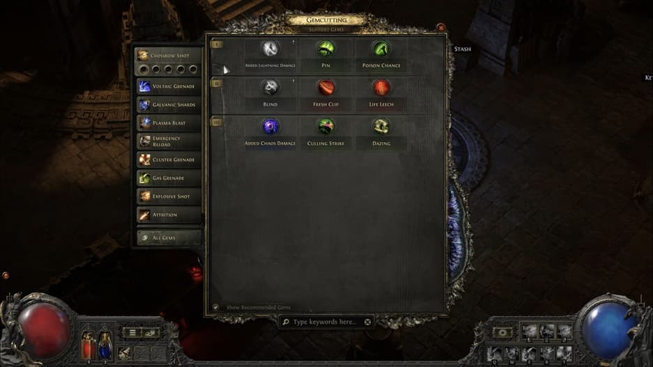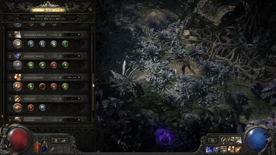 Персонаж начинает с девятью слотами для камней умений, каждому из которых доступны два гнезда для поддержки. Дополнительные гнезда открываются с помощью сфер ювелира трех уровней качества.