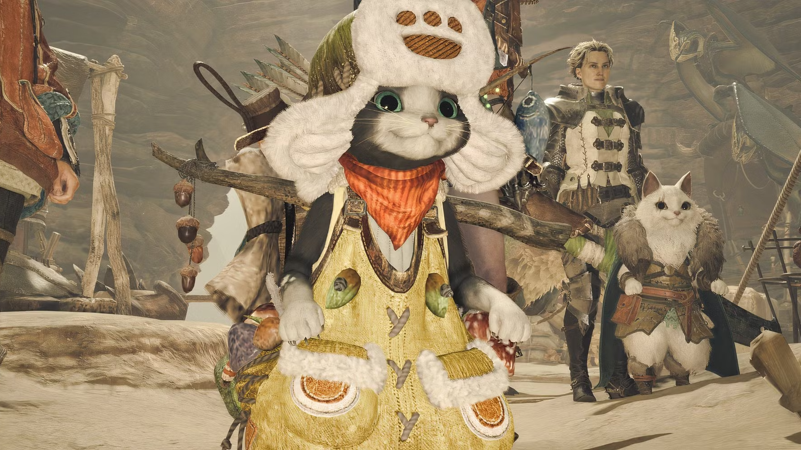 Помимо ездового животного, вам на помощь выделили ещё двух проводников. Альма хранит собранные предметы, а компаньон из расы Палико собирает растения и животных, а также помогает в битвах, расставляя ловушки и исцеляя игрока.