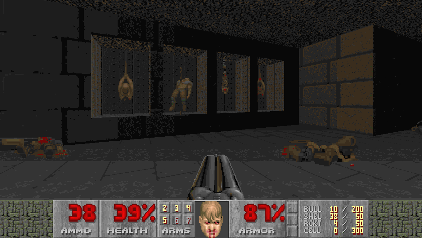 Текстуры обрели невиданную для 1993 года детализацию. Кровавые следы, потрескавшийся металл, пугающие образы в темноте — каждая поверхность работала на атмосферу. Мир Doom казался живым и пугающе достоверным, что было немыслимо в эпоху Wolfenstein с его условными однотонными текстурами.