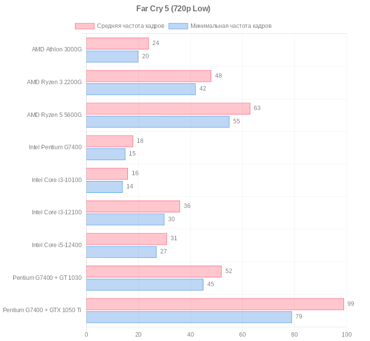 | Процессор | Средняя частота (FPS) | Средняя минимальная частота (FPS) |