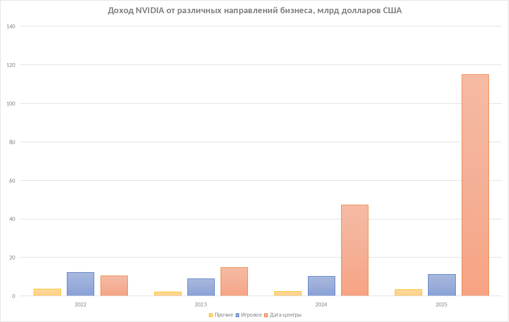 - Доход от сегмента дата-центров — 115,2 миллиарда долларов (+142% год к году).