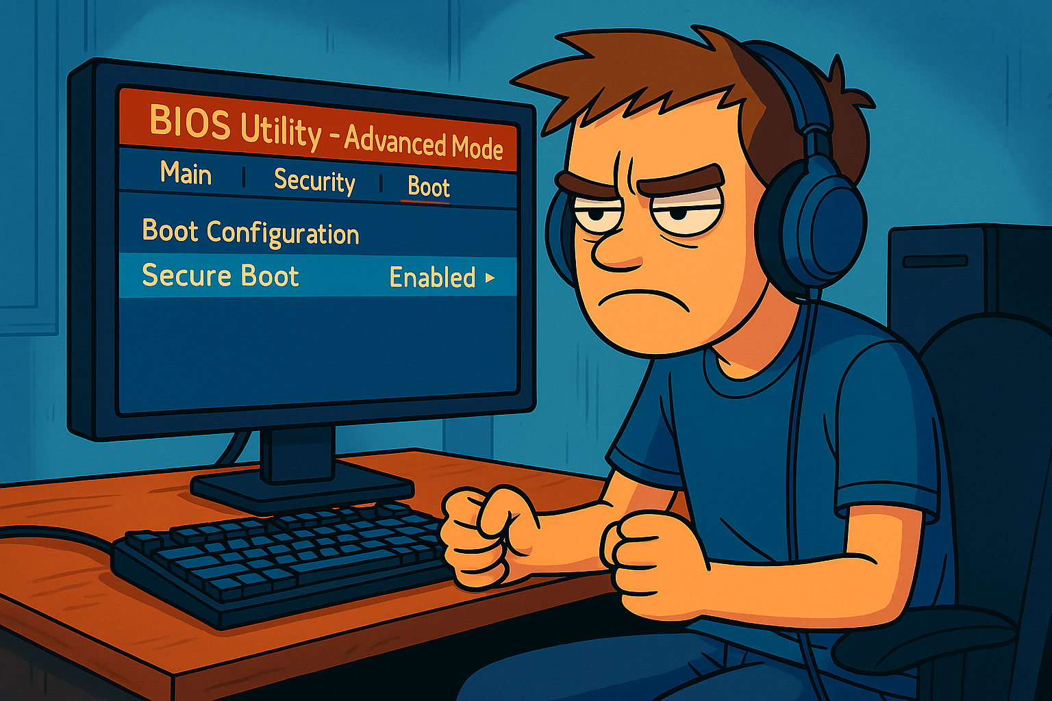 - Secure Boot — технология защиты, встроенная в BIOS. Она проверяет цифровые подписи загрузочных файлов, драйверов и компонентов системы. А также предотвращает запуск изменённых или неподписанных элементов, защищая от руткитов и вредоносных загрузчиков.