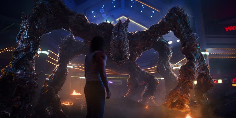 Реактор взрывается, портал схлопывается, мясной монстр наверху погибает, а Хоппер исчезает в ослепительной вспышке.