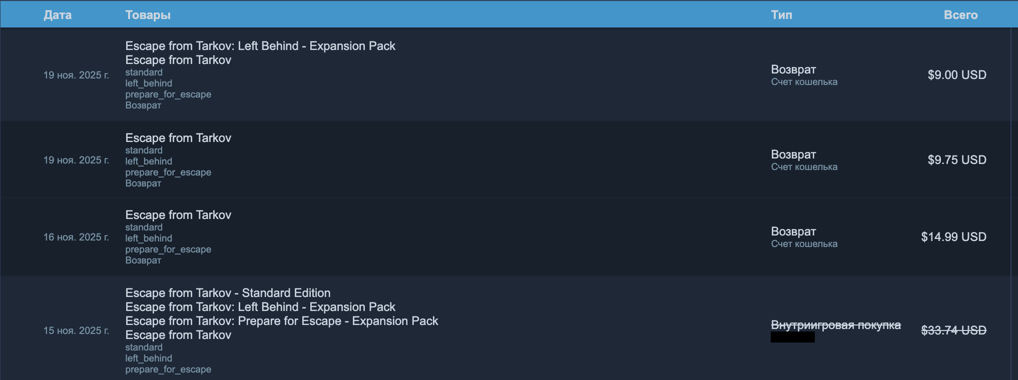 Ситуация отличалась для игроков из России и стран СНГ. Платежи за Escape from Tarkov проводились через Xsolla — международную платформу без полноценного юридического присутствия в РФ. Это затрудняло процесс взыскания средств и фактически лишало игроков возможности защитить свои права в рамках российского законодательства. В сочетании с регистрацией Battlestate Games в Великобритании это создавало юридический вакуум, в котором пользователи оставались без действенных механизмов давления на продавца. Многие игроки, пытавшиеся вернуть деньги даже через банк, сталкивались с отказом и последующей блокировкой аккаунта без компенсации.