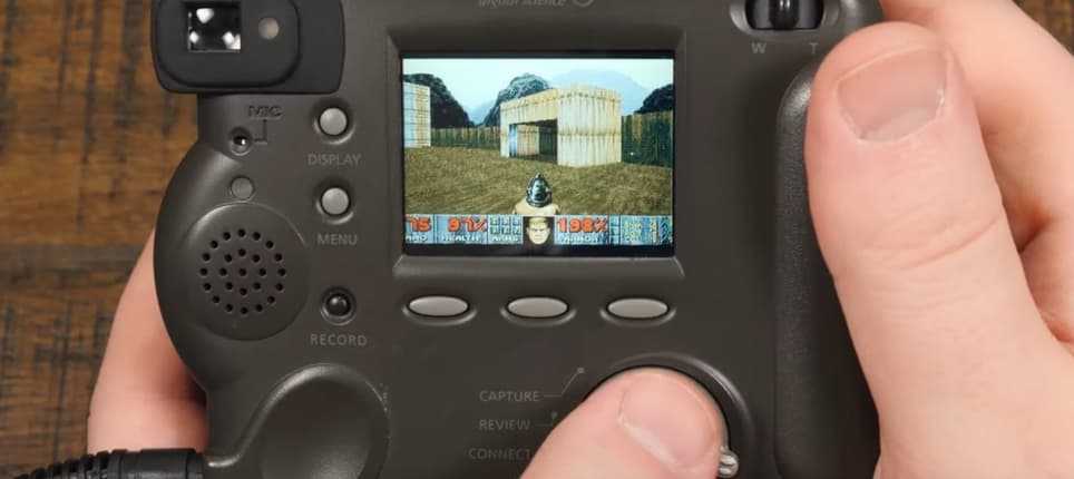 Фотоаппарат конца 90-х кажется неподходящим устройством для игр: он должен фотографировать, сохранять снимки и показывать меню. Но здесь DOOM смотрится особенно интересно.