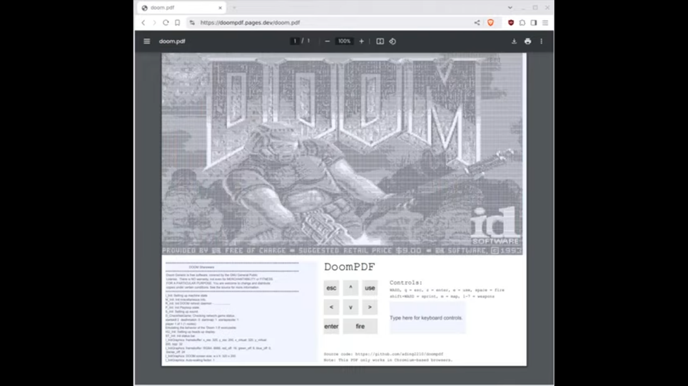 PDF-файл обычно воспринимают как «цифровой лист бумаги», который должен быть статичным. Поэтому DOOM внутри PDF — один из самых наглядных примеров формулы «игра как файл».