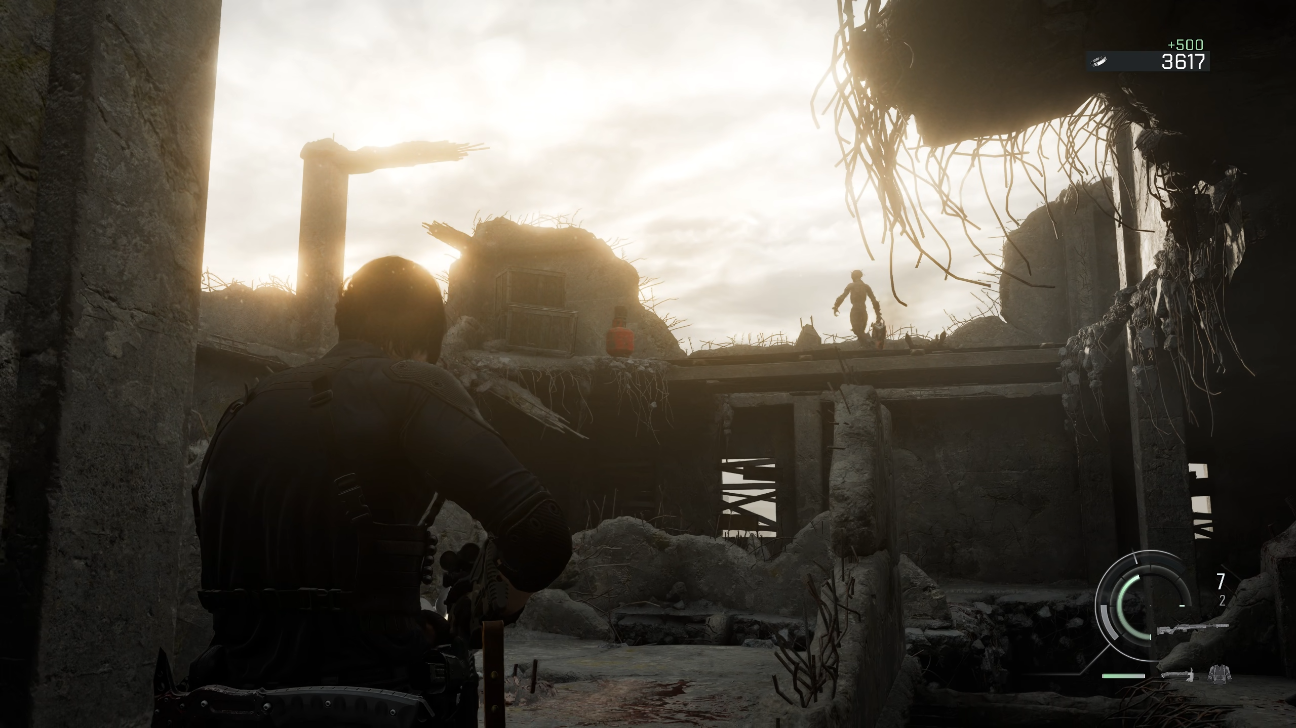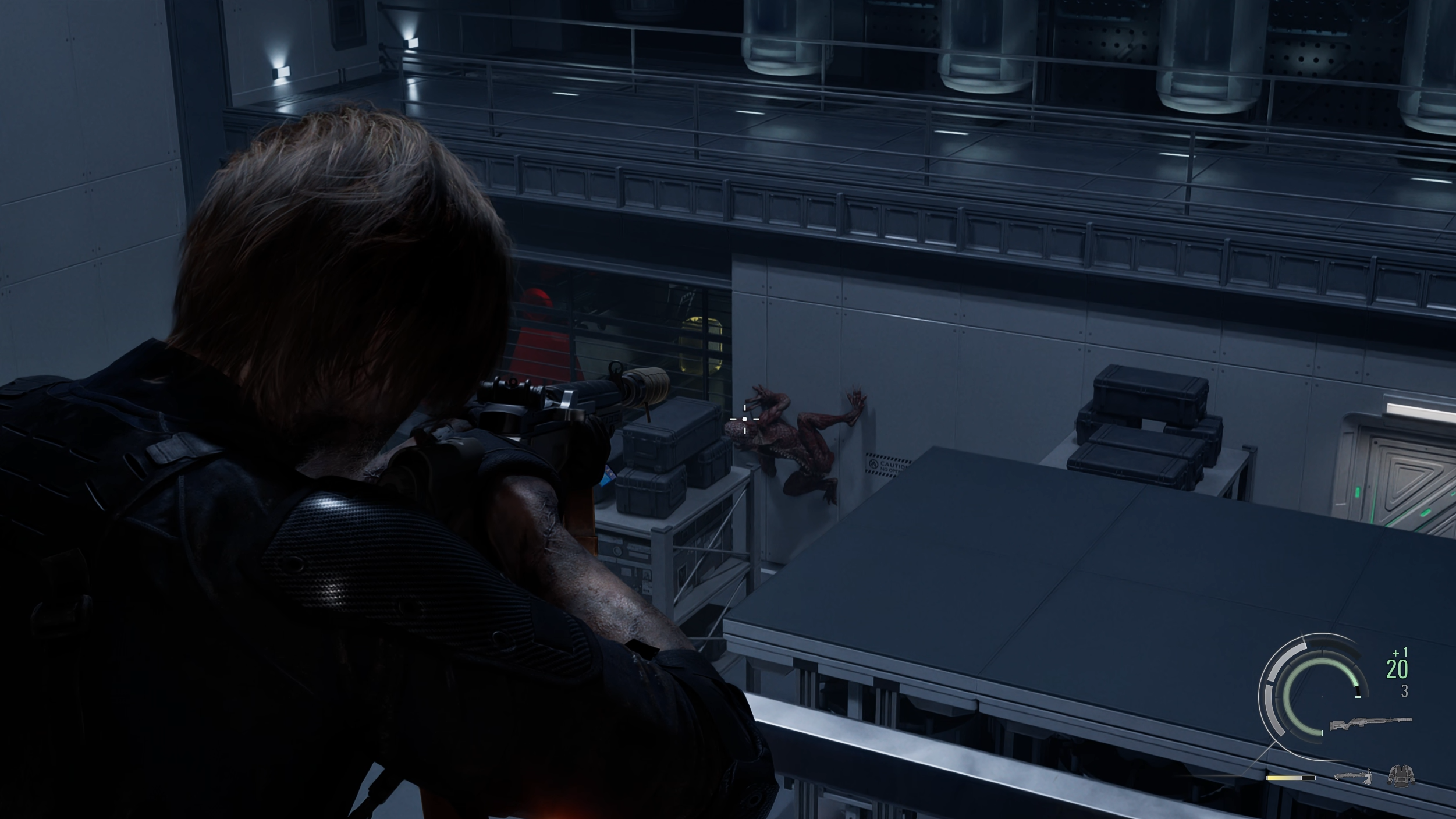 Через разбитое окно она выбралась на эстакаду, где находились два лизуна. Устранив их, Грейс разбила ящики с ресурсами и спрыгнула ко входу в Хранилище Б.О.О. 05.