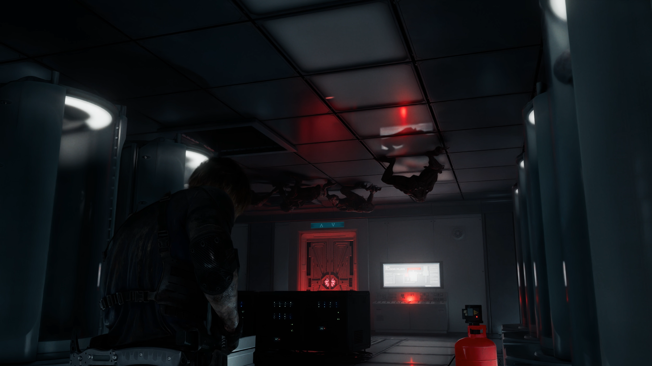 Грейс вышла из комнаты и направилась к посту медсестры. Он находился напротив помещения, где она пришла в себя. Стоило открыть дверь, как на неё вывалился труп. Она не успела его осмотреть: гигантская лапа утащила тело вверх, и уже через секунду челюсти чудовища сомкнулись на голове мертвеца.