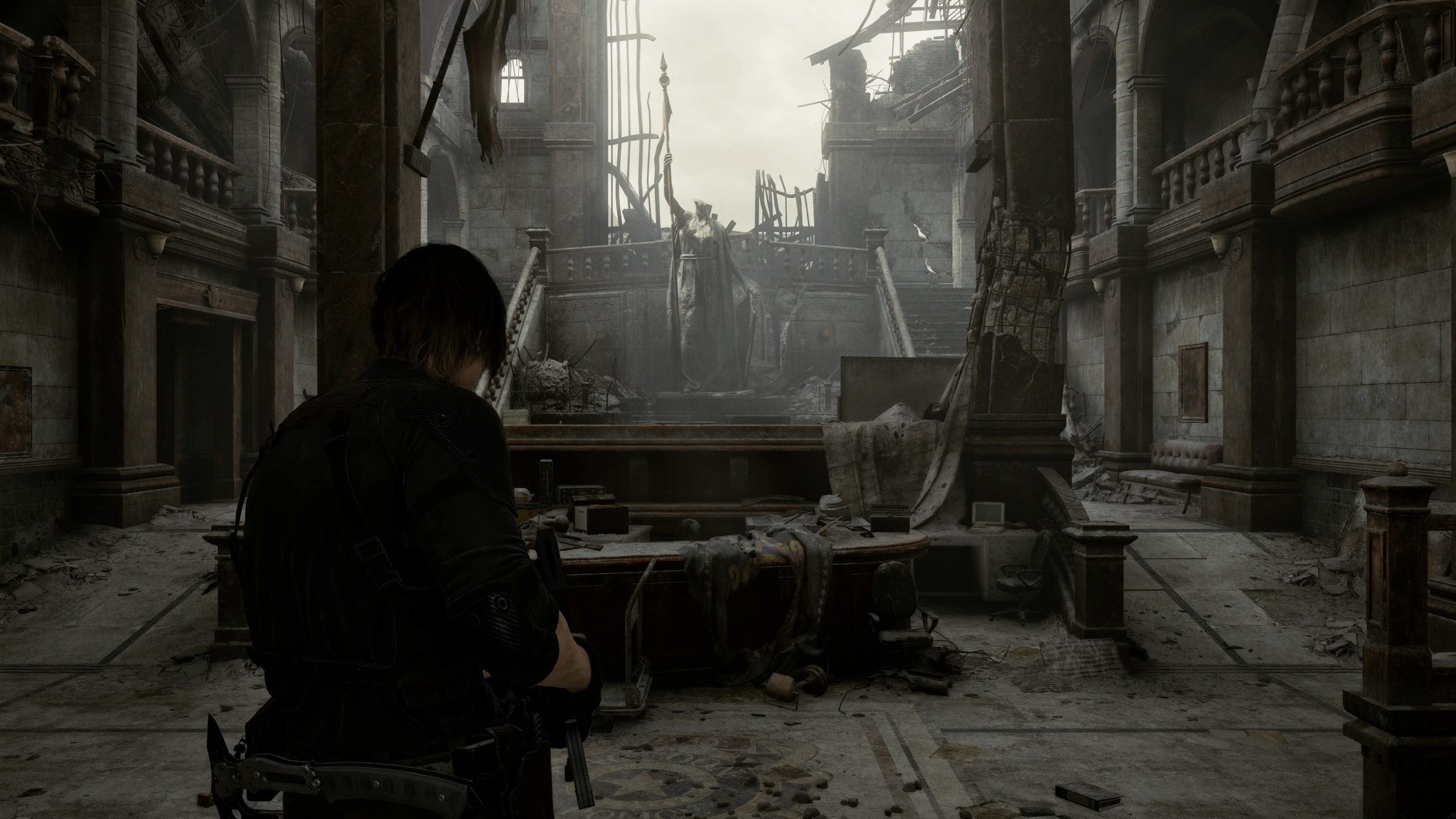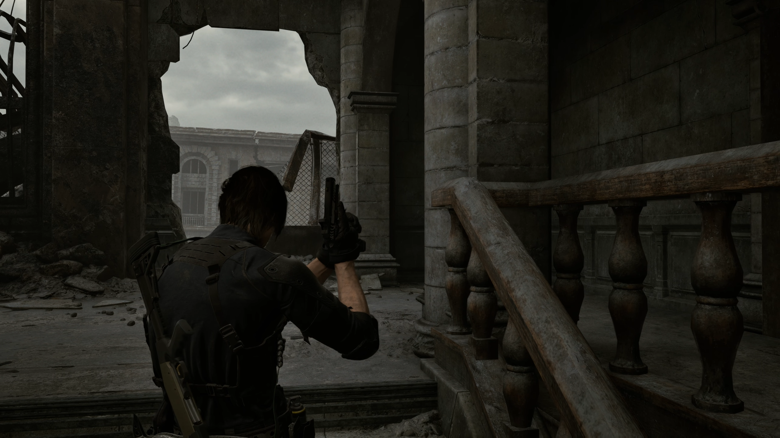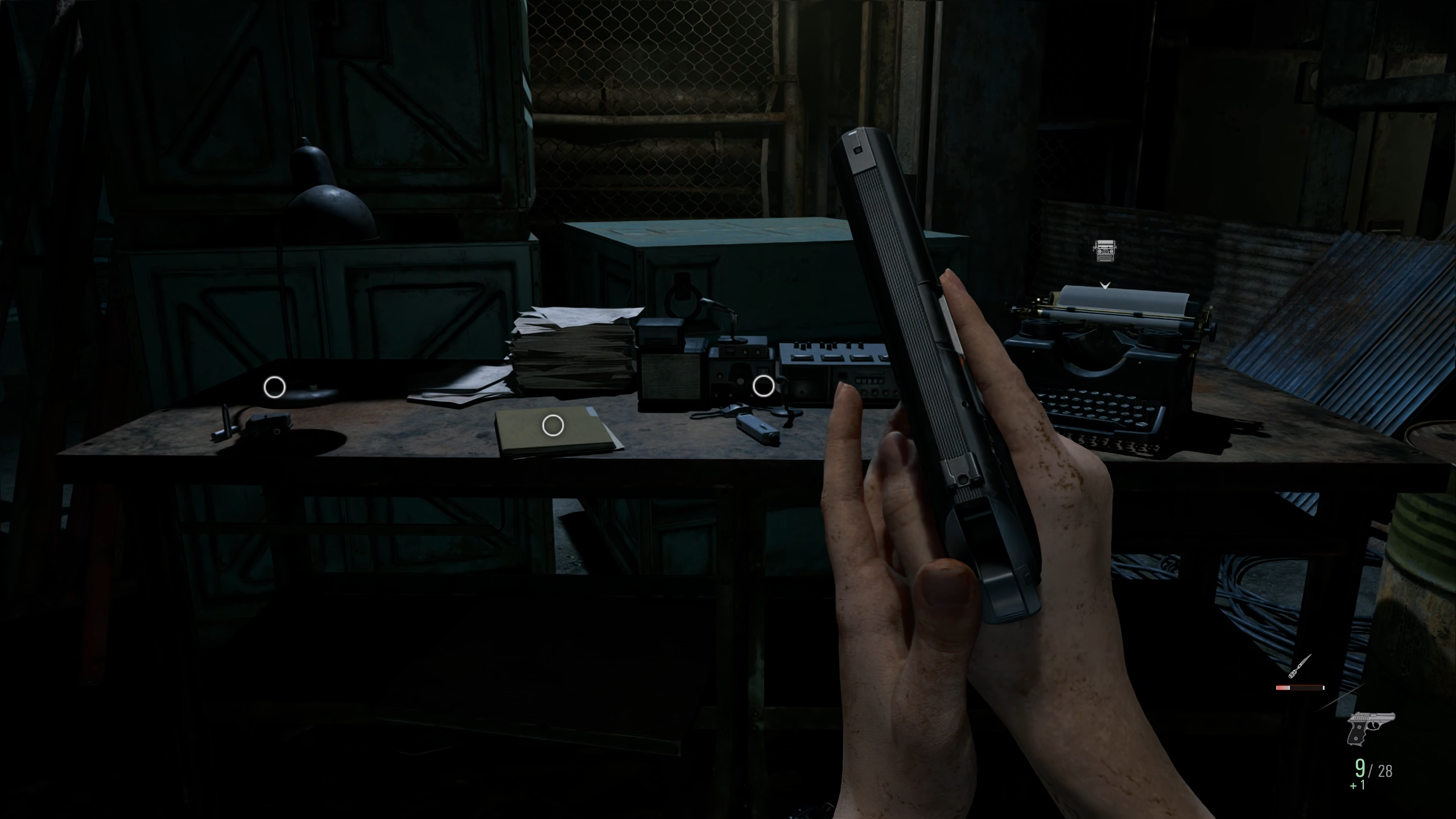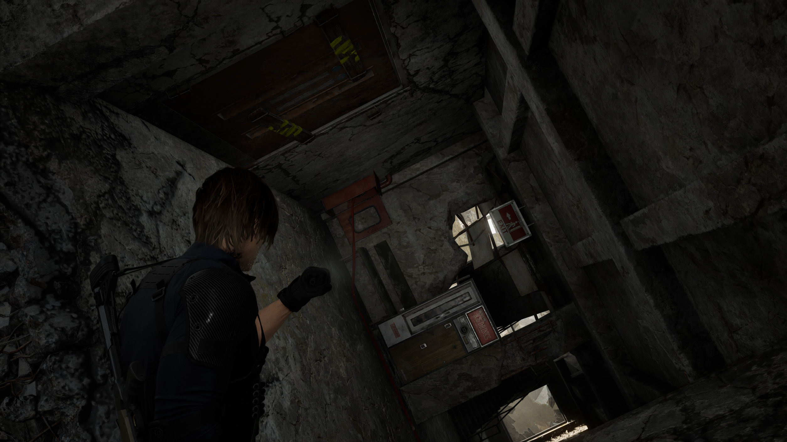 Грейс расчистила путь, и кран больше не перекрывал лестницу. Леон поднялся наверх и оказался в задней комнате. Он разбил два ящика с ресурсами и взял со стола патроны для «Реквиема».