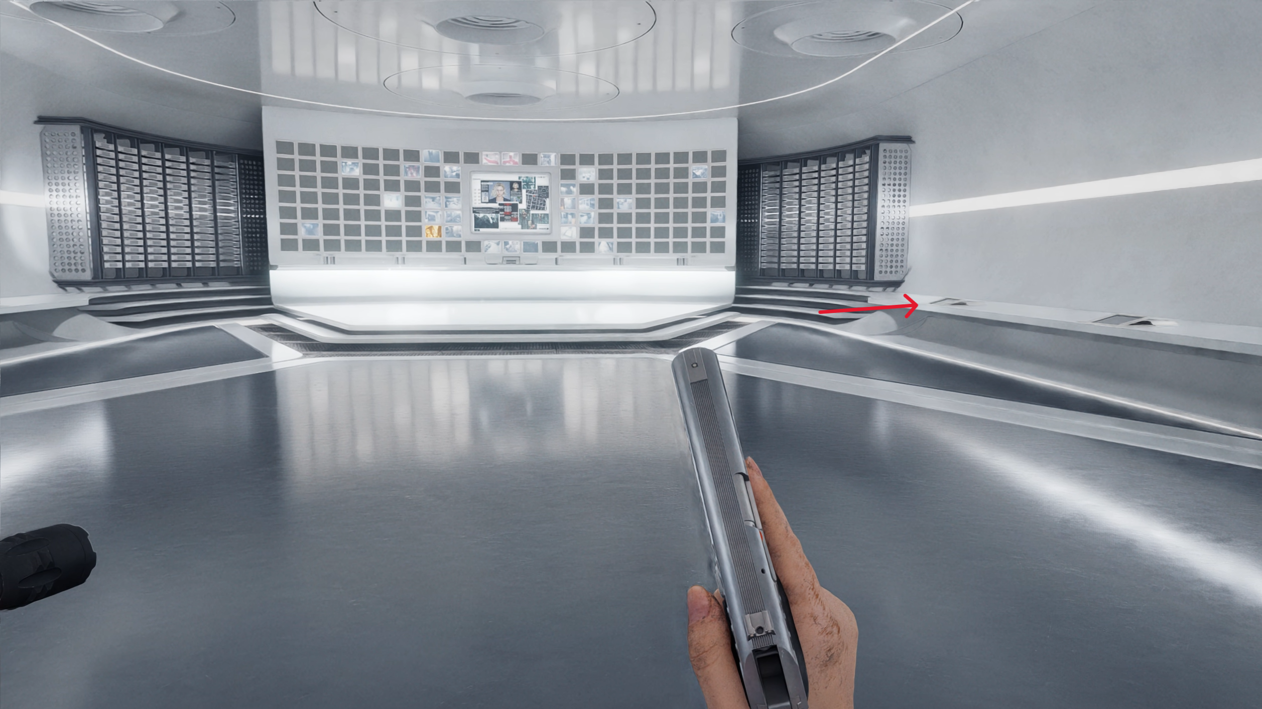 Справа от пишущей машинки теперь открывалась большая дверь в вестибюль. В центре зала находилась массивная красная дверь в административный блок ARK. Рядом располагалась панель с двумя выемками под сферы. Одна уже была у неё — требовалась вторая.