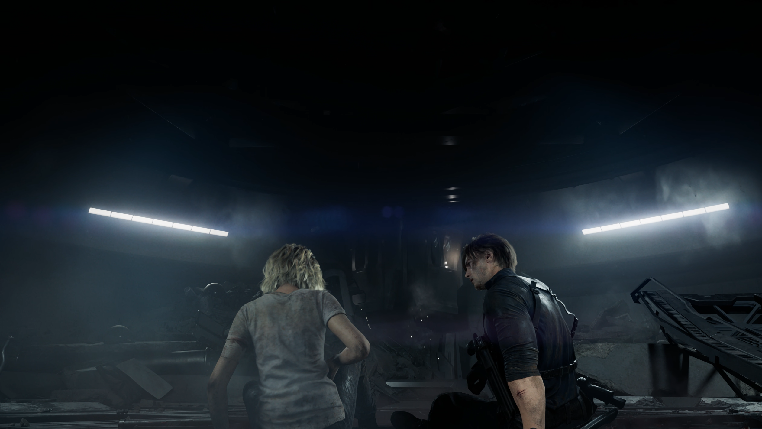 Леон пришёл в себя, схватил Грейс, и вместе они сорвались вниз, оказавшись на полу промышленного уровня под ARK.