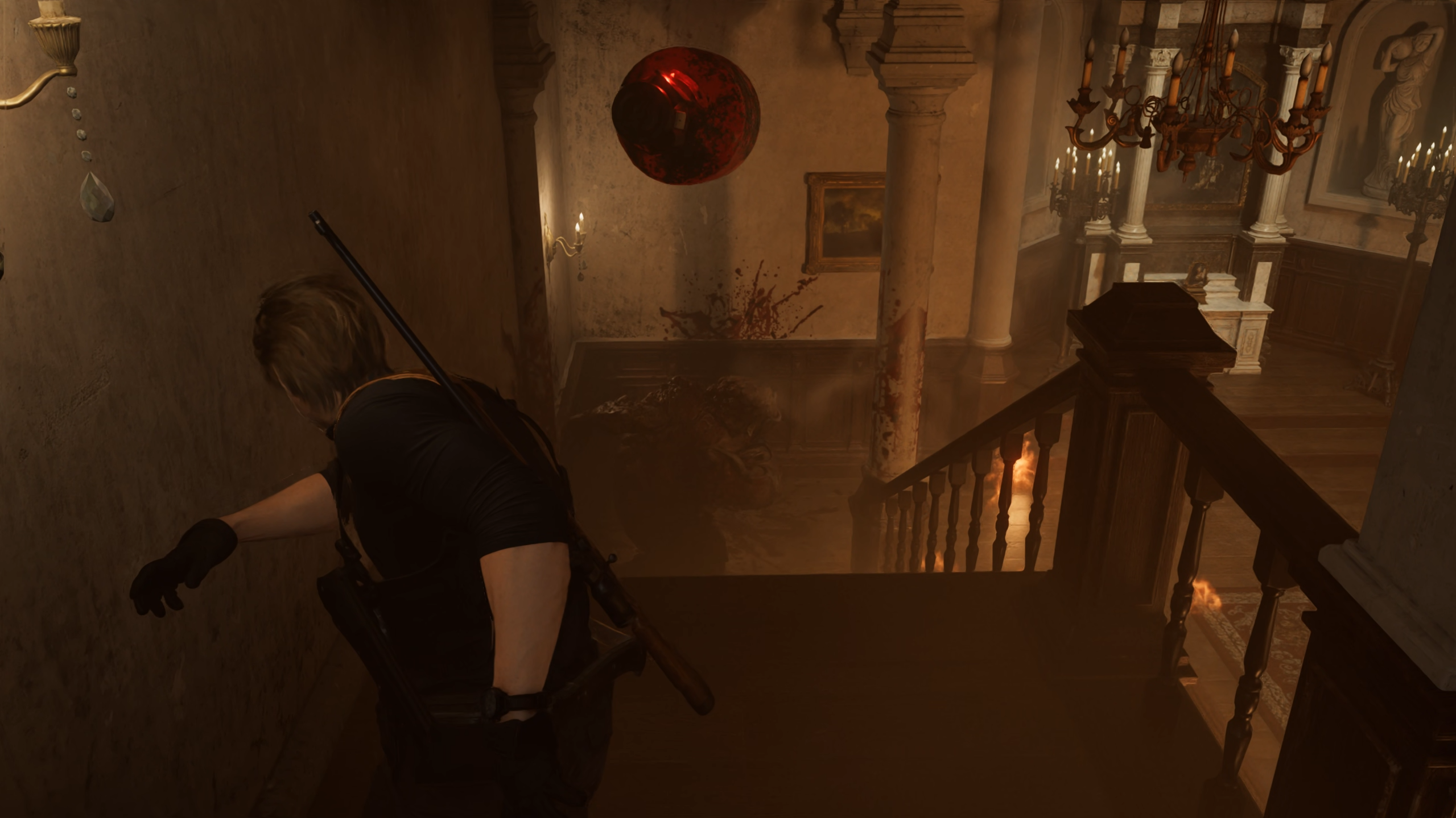В зале находилось несколько лизунов. Леон без лишних манёвров начал снимать их из винтовки, переходя на дробовик при сближении. Зачистив помещение, он спустился вниз и активировал пульт в северной части.