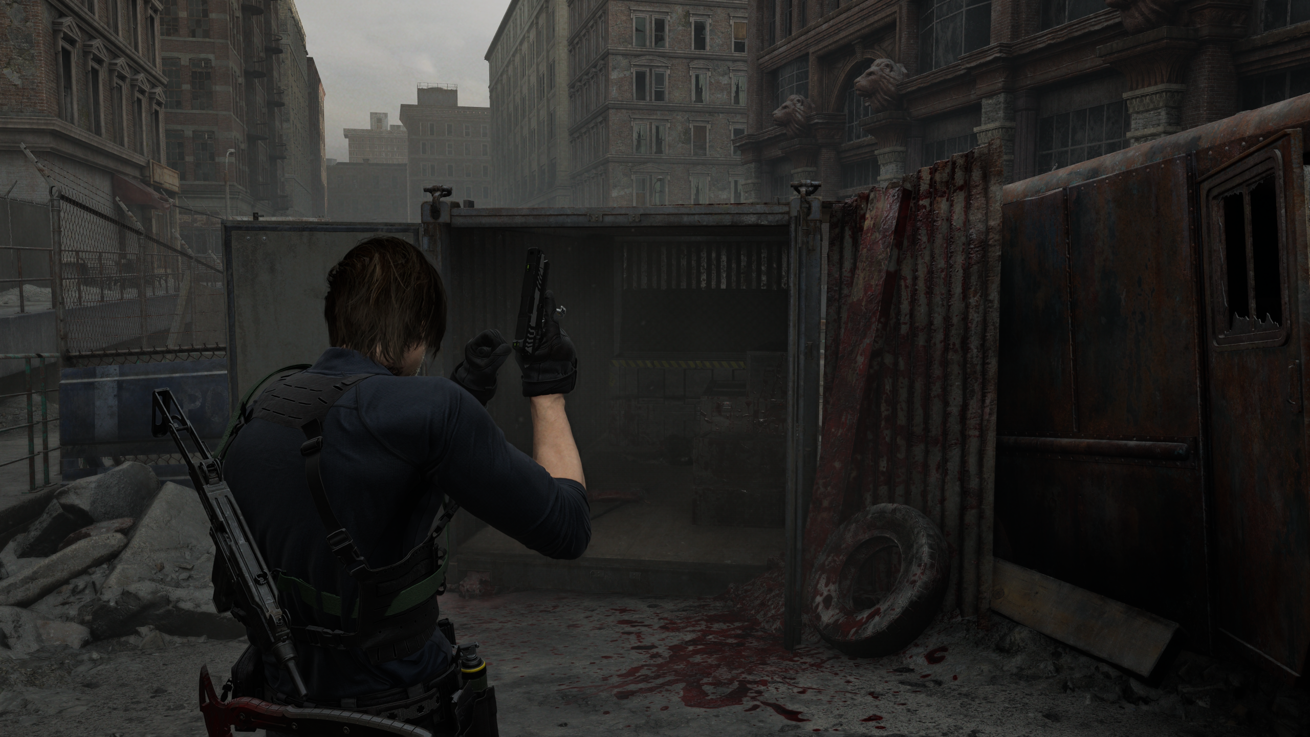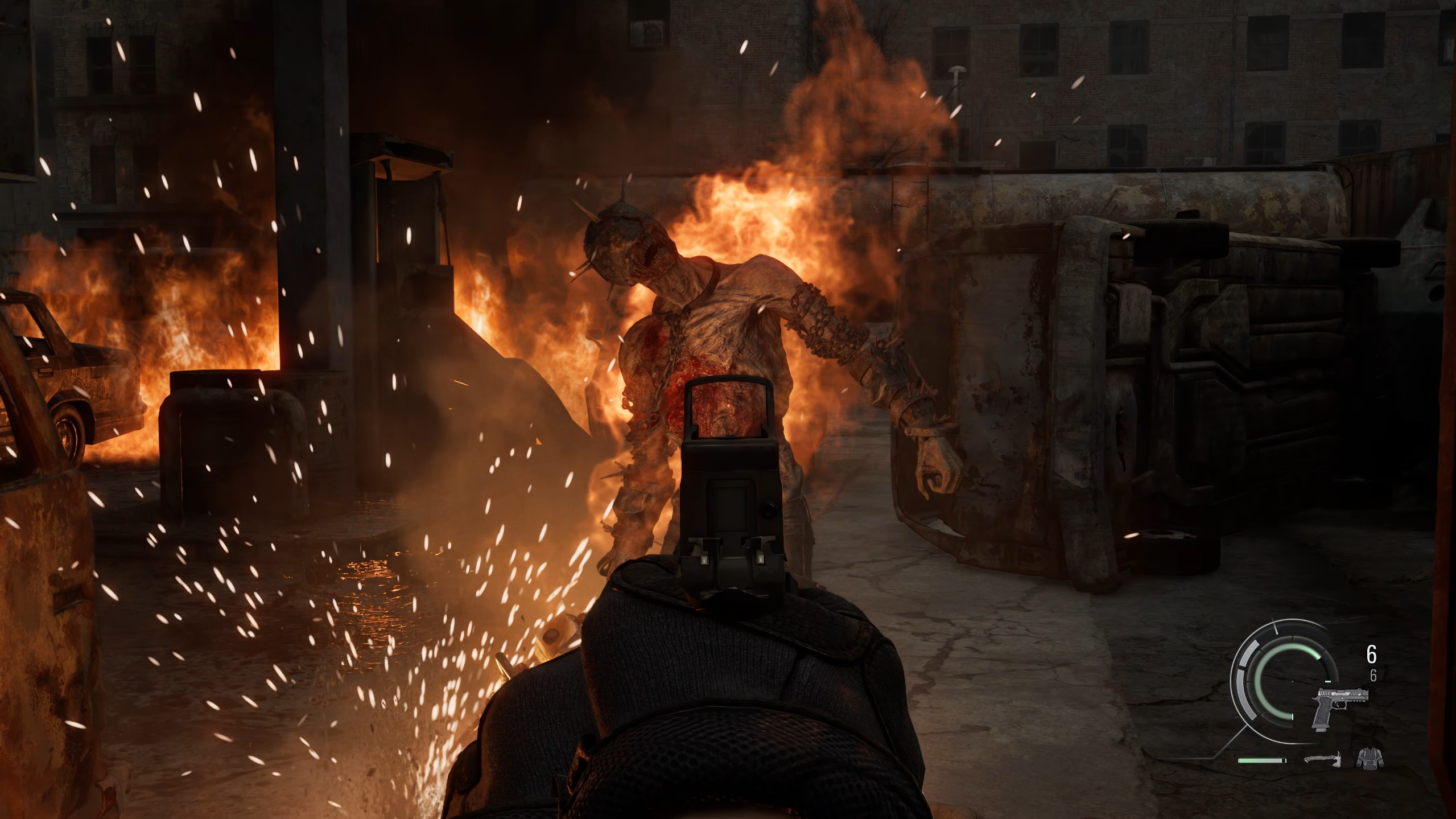 На перекрёстке несколько машин столкнулись, одна пронеслась в сантиметрах от Леона. Он начал терять терпение и достал «Реквием» — любимый револьвер, устраняющий любую помеху одним выстрелом.