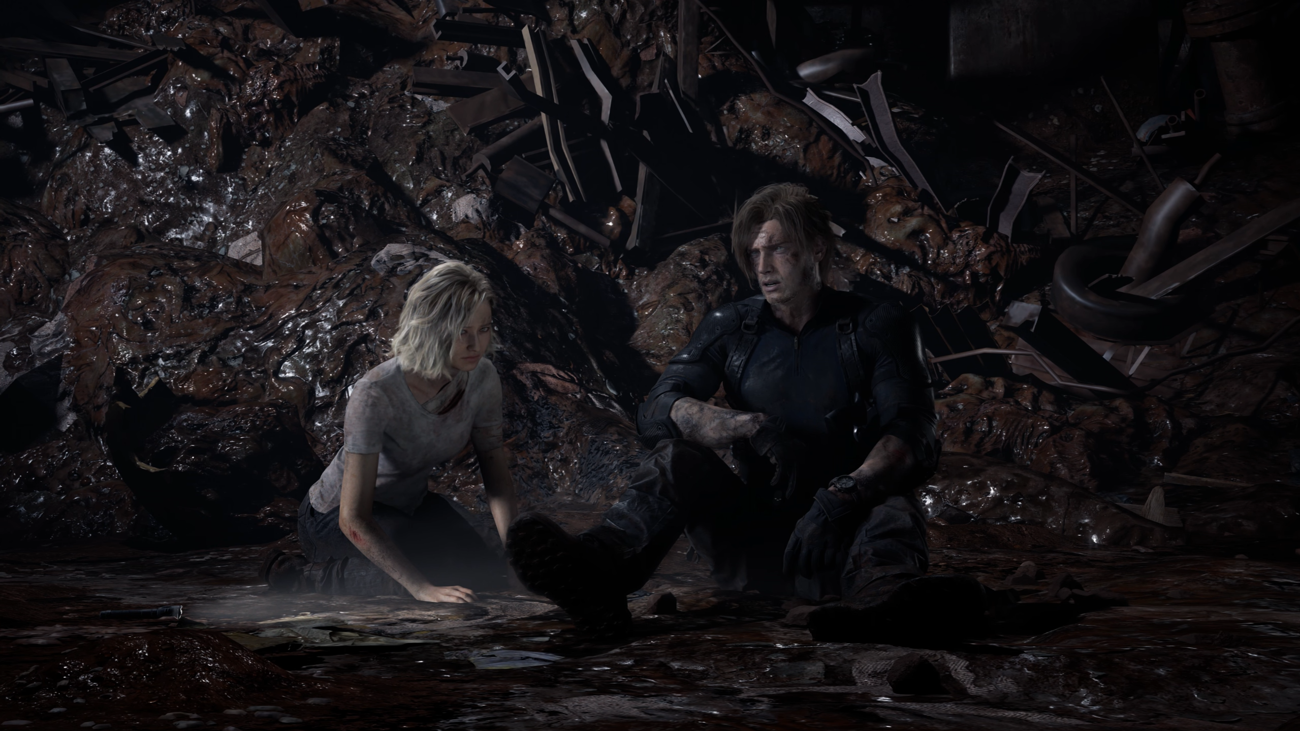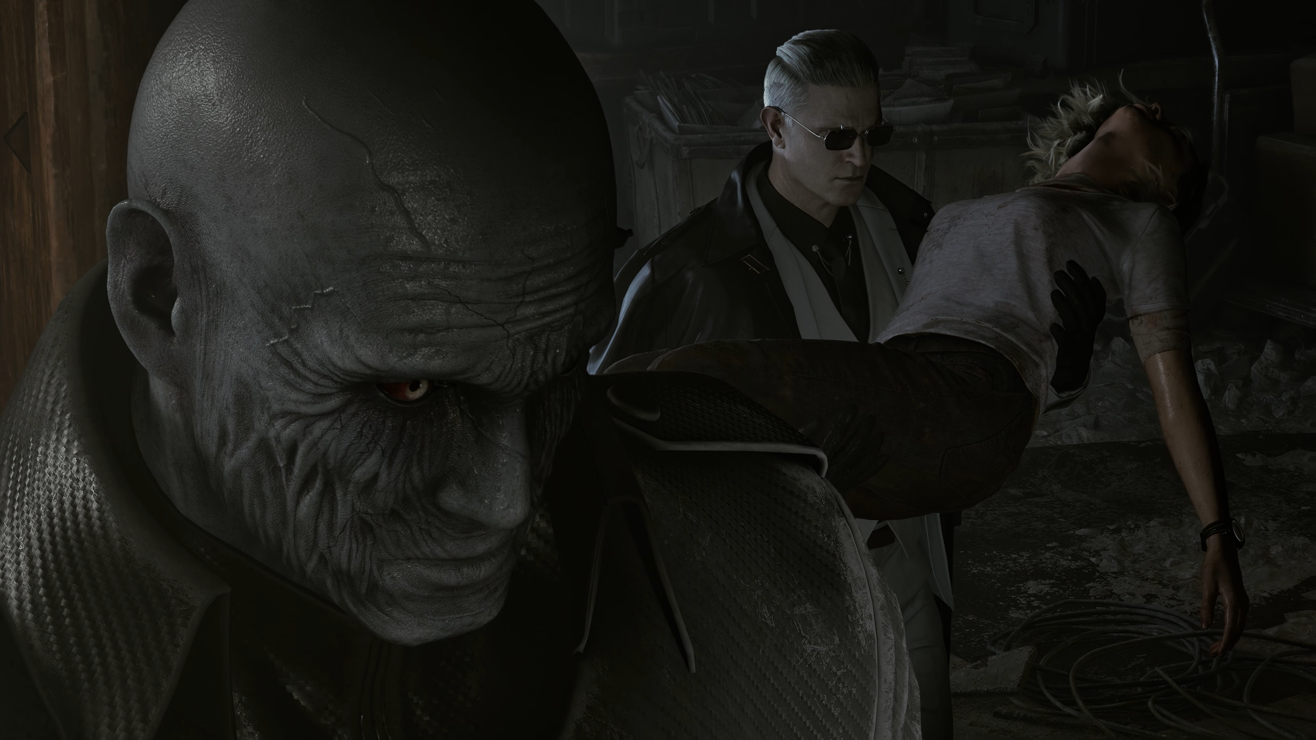 Тем временем в разрушенном центре Раккун-Сити неизвестные спустились в остатки ARK. Один из них поднял нашлемную камеру бойца BSAA.