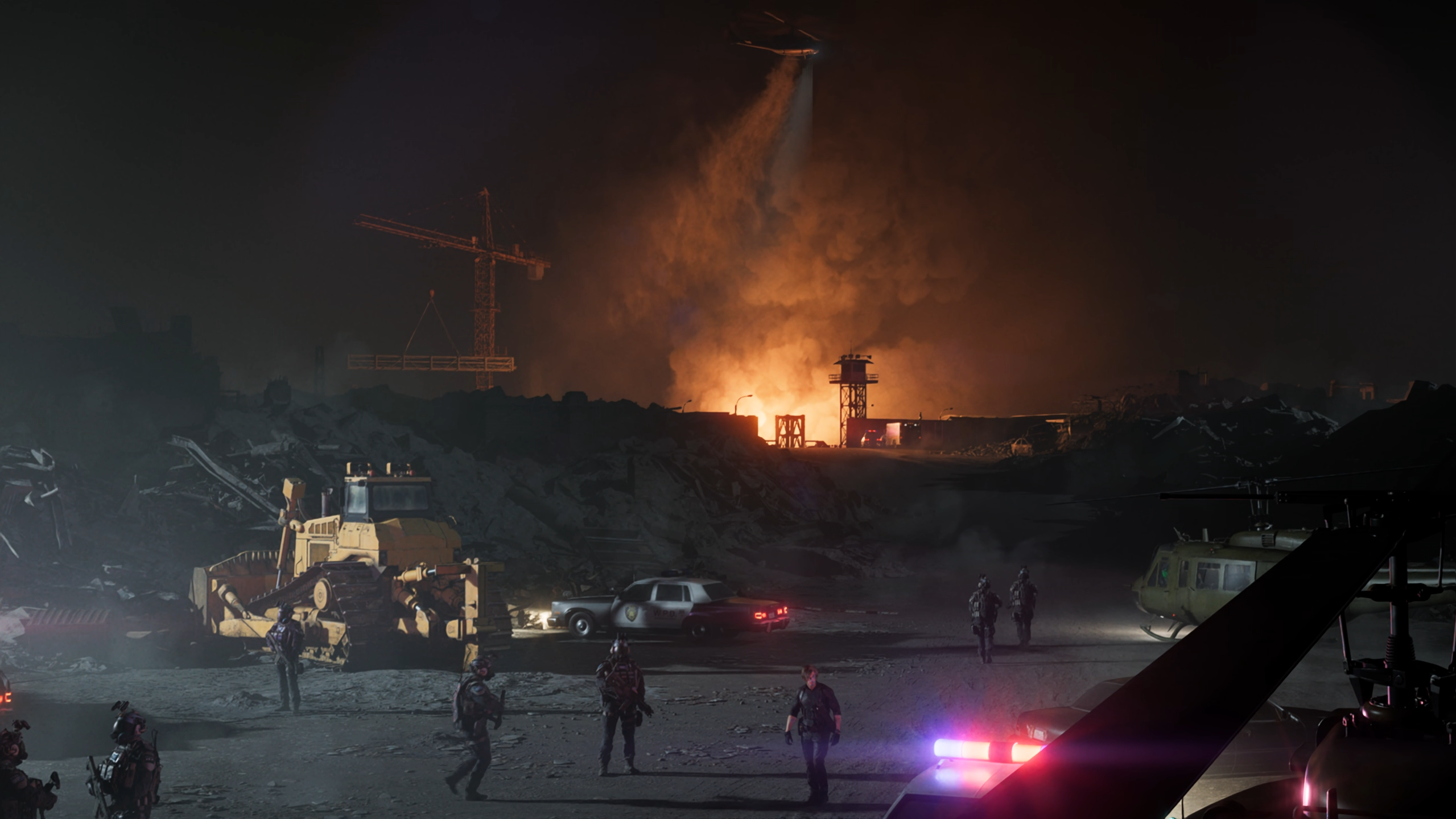 Они сели на полу, пока свет медленно покидал помещение. Казалось, выхода нет. В этот момент сверху ударили прожекторы. По тросам спустились оперативники. Один из них подошёл к Леону.