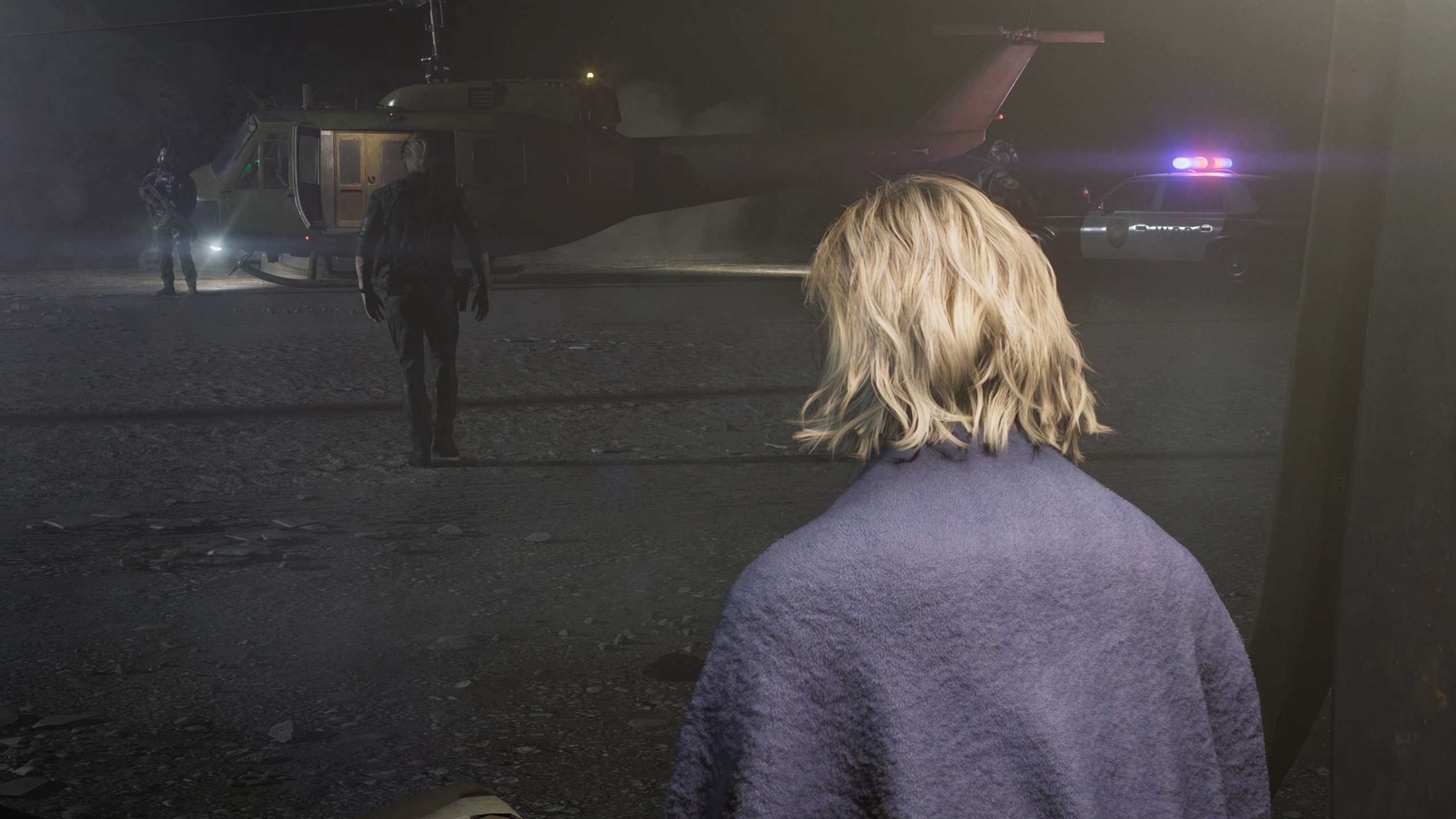 Их эвакуировали. Снаружи уже работали вертолёты и пожарные расчёты. Леон связался с Шерри.