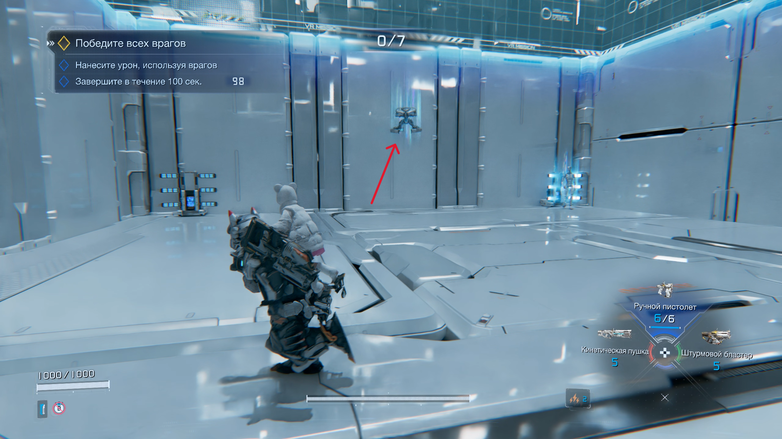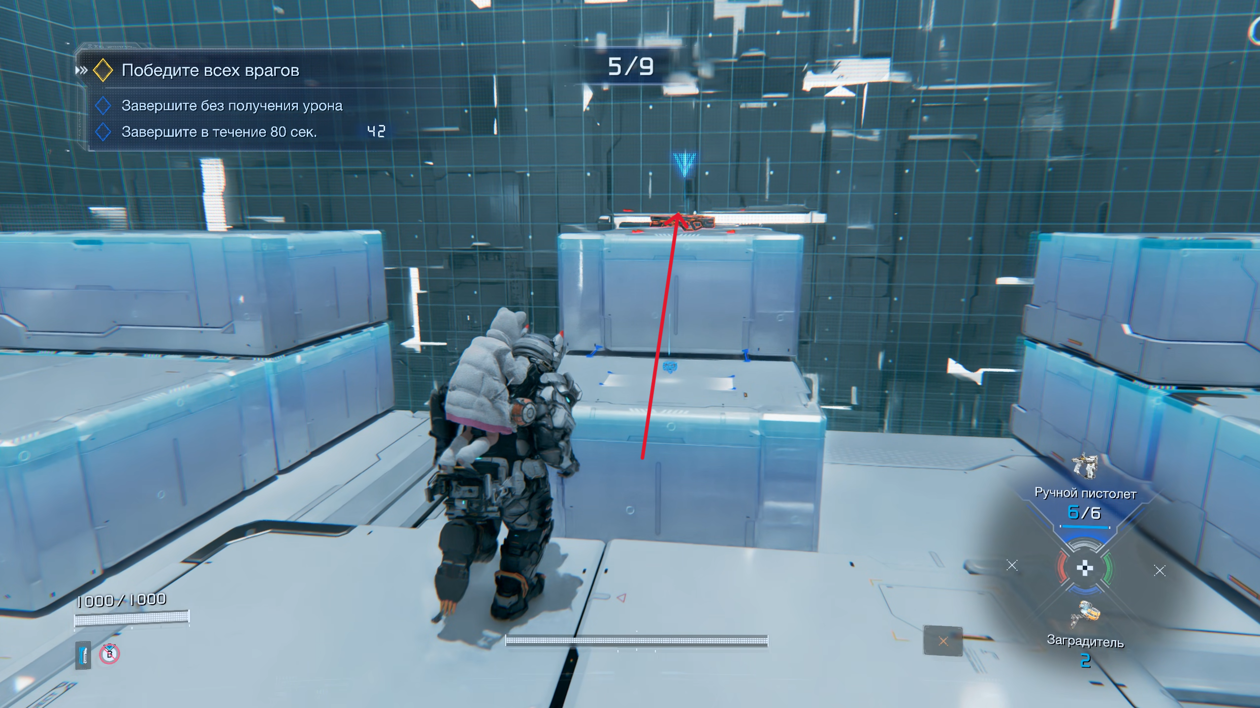В этом испытании нужно уничтожить 9 дальнобойных противников, которые появляются в несколько волн. По всей арене разбросаны Кинетические пушки и Заградители — именно они помогут не получить урон. При этом не забывайте предварительно взламывать каждого врага: это не только прервёт их атаку, но и позволит расправиться с ними всего одним выстрелом.
