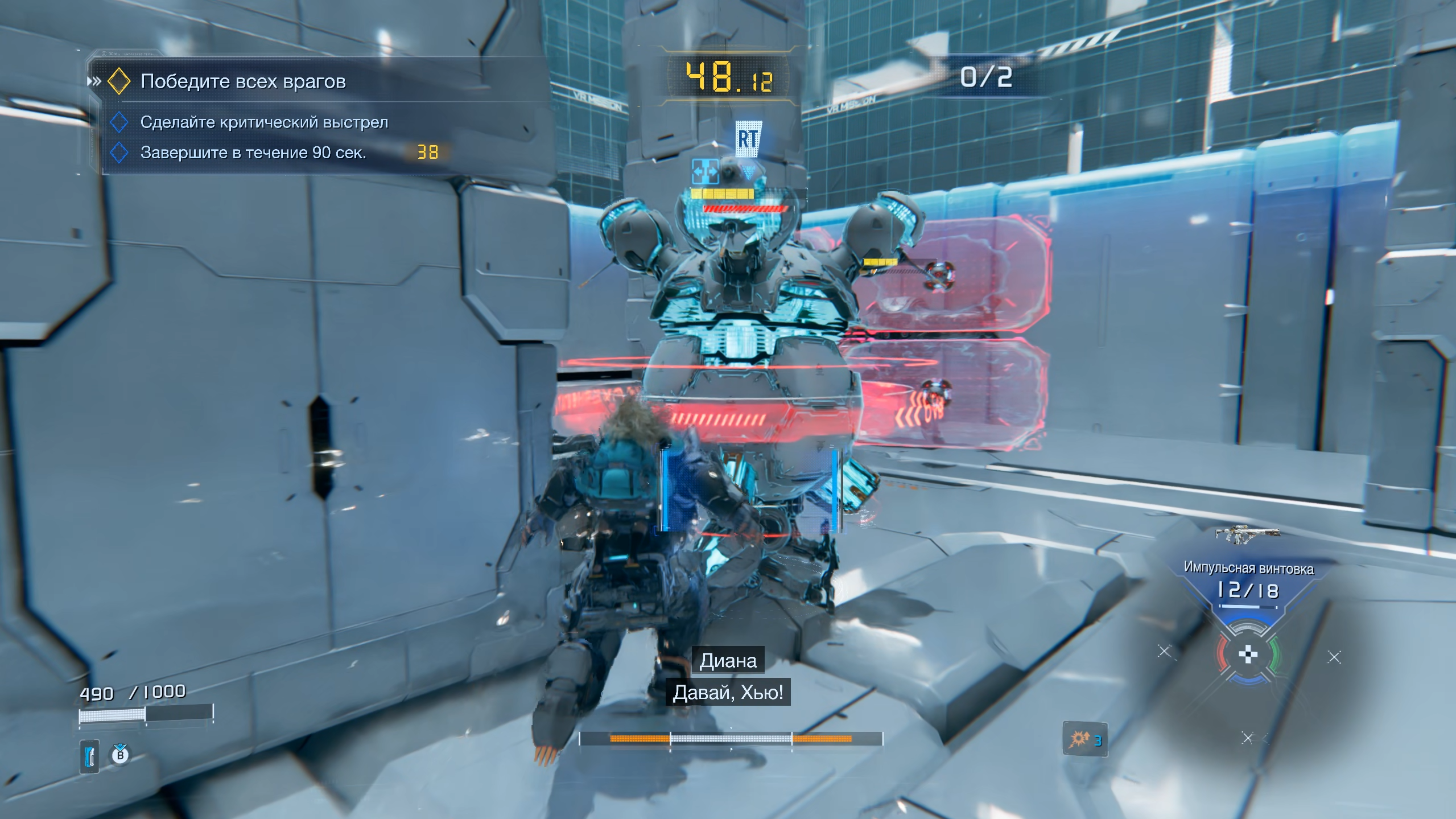 В этом испытании нужно быстро уничтожить Исполнителя и не дать ему выпустить антенны, которые мешают взлому Дианы.