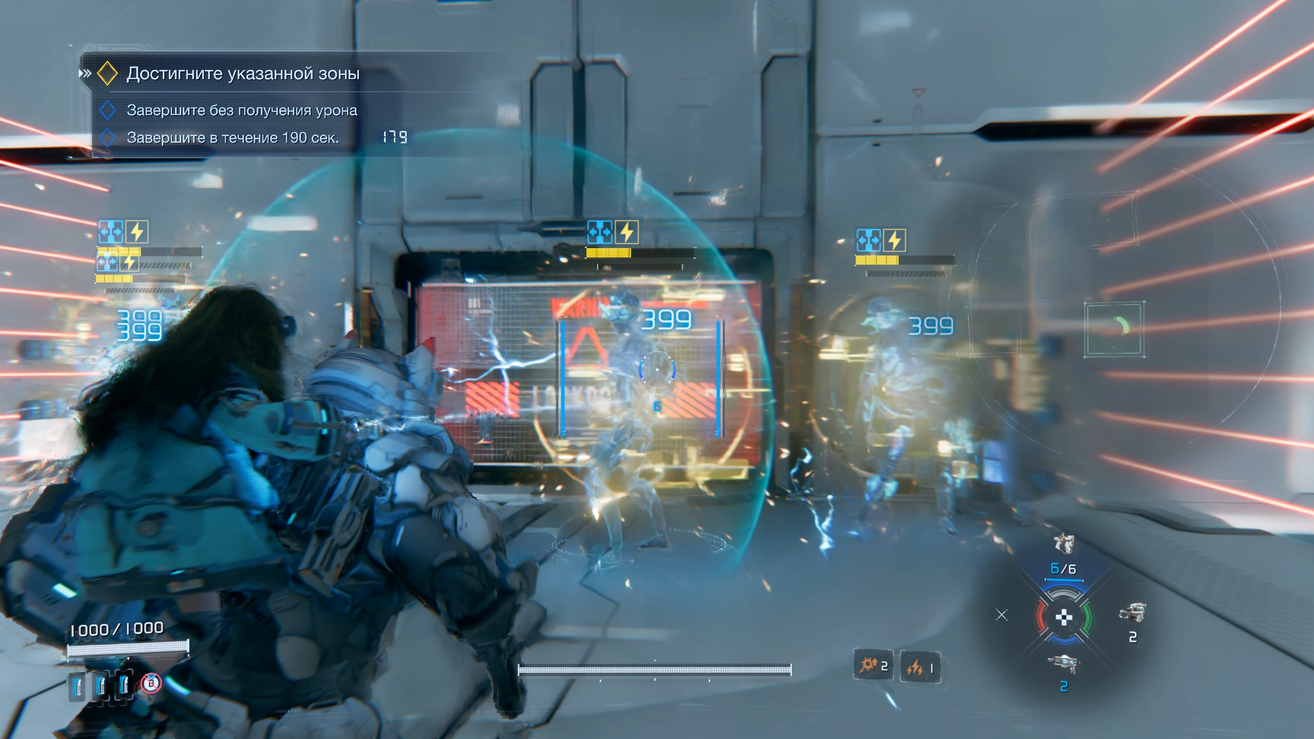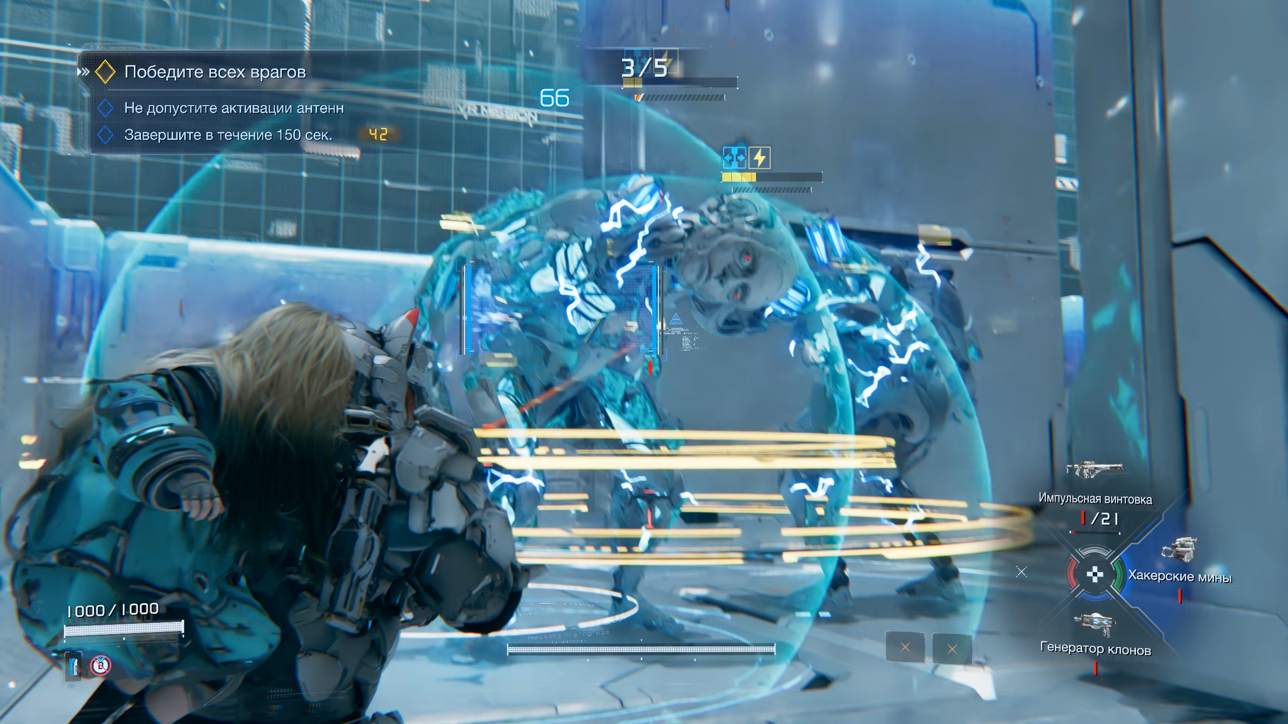 А вот в третьей волне стоит быть внимательным. Два Исполнителя появятся из центрального устройства, и именно туда стоит установить клона и Хакерскую мину, которую нужно взломать при их появлении. Комбинация узлов взлома создаст цепную реакцию, и противники просто замрут на месте. Продолжайте подбрасывать и взламывать мины в этой точке, и противники очень быстро погибнут. При желании можно немного помочь себе выстрелами из Импульсной винтовки, но, если всё сделать правильно, ни одного выстрела не потребуется.