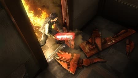 Свойства огня отлично вписываются в физическую модель игры. Вот лишь одна из многочисленных схем взаимодействия: при помощи снятого со стены огнетушителя разламываем на куски стоящий поблизости деревянный стол. Оторванную ножку обматываем тряпкой, поджигаем – факел готов. Теперь можно не только освещать себе дорогу, но и охаживать горящим «веником» недругов. Возьмите в другую руку аэрозольный баллончик – и получите резервный огнемет, способный угомонить более живучих врагов.