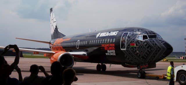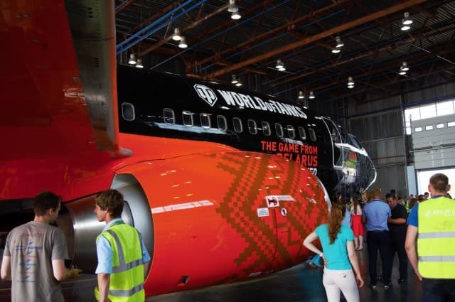 Сегодня произошло интересное событие: компания Wargaming.net и авиакомпания «Белавиа» представили пассажирский самолет Боинг-737, раскрашенный в фирменные цвета World of Tanks — черный и оранжевый. Вызывающий внешний вид подкрепляется подписью «The Game from Belarus Enjoyed Worldwide» («Игра из Беларуси, в которую играет весь мир»).