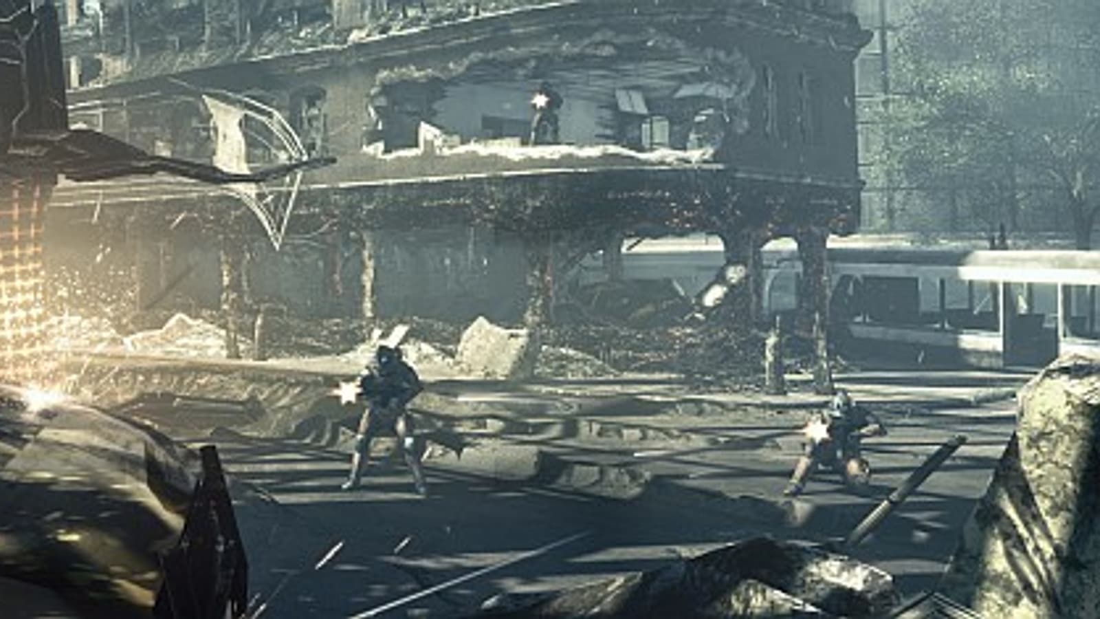 Конечно, эффект от увиденного в игре во многом зависит от художников и дизайнеров и только потом - от мощностей движка. В мультиплеерной бете смотреть особо не на что. Крыша небоскреба, коробки-кробки-коробки, всюду прямые углы, пара оранжерей с некрасиво бьющимися стеклами, льющаяся из пробитой водонапорной башни вода, тяжелый дым из трубы, почему-то не объемный, стелющийся по земле резкими полосами.