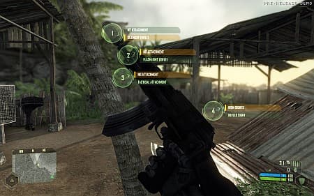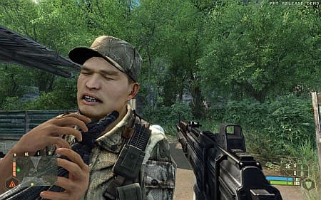 У нано-костюма есть четыре режима. В первом он действует, как энергетический щит. Второй позволяет резко ускоряться. Третий увеличивает силу: дикие прыжки и выбивание стен кулаками из этой категории. Четвертый ненадолго превращает героя в невидимку. Кажется немного, но этих приобретений оказалось достаточно, чтобы сделать игру динамичнее, веселее и разнообразнее. Прыгаем по крышам, разбиваем дома, косим пальмы, подкрадываемся к часовым и хватам их за горло, закидываем противников ящиками и бочками, любуемся вспышками взрывов. Из-за этого, правда, демоверсия проходится без напрягов на любом уровне сложности. Невидимость – это непробиваемая стратегия победы, которая позволяет безнаказанно выходить на стрелковую позицию, убивать парочку оторопевших врагов и прятаться обратно, дожидаясь возобновления энергии. Повторить, пока на радаре не исчезнут все цели.