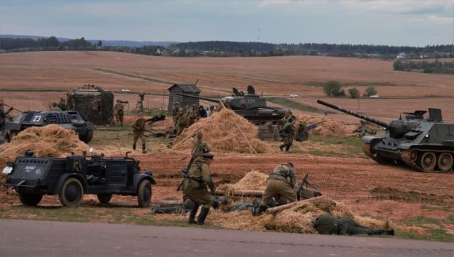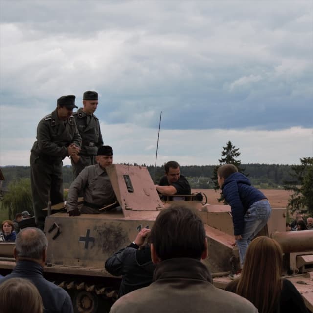 Изюминкой же праздника стала реконструкция танкового боя. Само собой, взрывались только петарды, танки на куски не разваливались, но дыма, взрывов и выстрелов было достаточно для того, чтобы впечатлить зрителей. Больше всего восхитил дряхлый военный самолет, несколько раз пронесшийся над «полем боя».