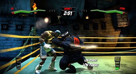 Поэтому главной задачей «боксеров» становится не просто быстрый-быстрый долбеж по кнопкам, а долбеж с пониманием — надо ведь, чтобы комбо не сорвалось и прошло до конца, а затем еще необходимо мгновение для нанесения спец-удара. Немного помогает в этом возможность оттолкнуть и оглушить противника, но и тут следует соблюдать осторожность, поскольку избавиться от «звездочек» над головой он может очень быстро — все тем же агрессивным долбежом по кнопкам.