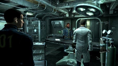 Дело в том, что увидеть папашу можно будет только после создания внешности своего героя. И уже на основании анализа его облика будет корректироваться лицо отца. Такой вот реверанс в сторону реализма. Что касается самого Vault 101, то он словно сошел с американских плакатов 50-х годов прошлого века. Компьютеры, работающие на реле, ламповые радиолы, соответствующая одежда и прочее. «Внутренний» мир Vault 101 довольно бесцветен, изношен и архаичен. Однако в нем царит покой и порядок. Вернее, царили вплоть до того момента, когда случилось то, что случилось…
