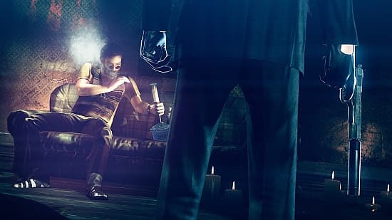 А дальше начинается кино. Относительно продолжительный и мало интерактивный фильм про то, как 47-ой убегает по крышам от стреляющего вертолета. Падают и расссыпаются прошитые пулями ящики, укрытия превращаются в ситечко, остается только бежать вперед до встречи со следующим полицейским, и тут киллер демонстрирует свою любимую способность - переодевание. Нацепив форму полицейского, он спокойно проходит сквозь охранный кордон. Неловко прикрывает лицо, когда рядом оказываются «коллеги», и спешит прочь. Наткнувшись на группу спецназовцев, 47-ой остановливается у стола и с деловым видом начинает трескать пончик. Хотя наверняка руки так и чешутся подхватить автомат и тупо всех перестрелять. А потом он выходит на платформу поезда, где толпится столько людей, сколько в московском метро не часто увидишь в час пик!Игра демонстрировалась на платформе PS3 и восхищала графическими решениями (особенно удался ночной ливень), отсуствием тормозов, насыщенностью объектами и эффектами. Локации сменяли друг друга чрезвычайно быстро. За каждой новой дверью можно увидеть что-то новое и неожиданное. При этом люди вокруг вели себя как... как люди. Он ругались, кривлялись, ленились и злились, разыгрывали маленькие спектакли, и таких выступлений тут полным-полно. Особенно рассмешили наркоманы, к которым 47-ой ввалился в полицейской форме. Одни из них чуть не обделались на месте, зато самый шустрый схватил горшок с травкой (комичности придавало то, что вся комната была ими заставлена) и понесся в туалет смывать «улики». Другой «овощ» на диванчике сосал кальян и рассказывал про свои видения.