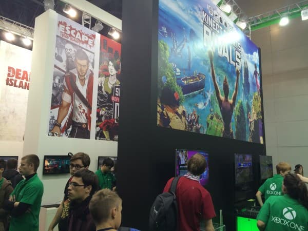 В соседнем зале более скромно расположилась Microsoft. Никакой презентации в пресс-день компания не организовала, да и демозона выглядела отнюдь не так внушительно — Forza Horizon 2, Kinect Sports Rivals, Halo. Под широким постером Sunrise Overdrive мы уже было воспряли духом, но, увы, внизу нас поджидал Killer Instinct.