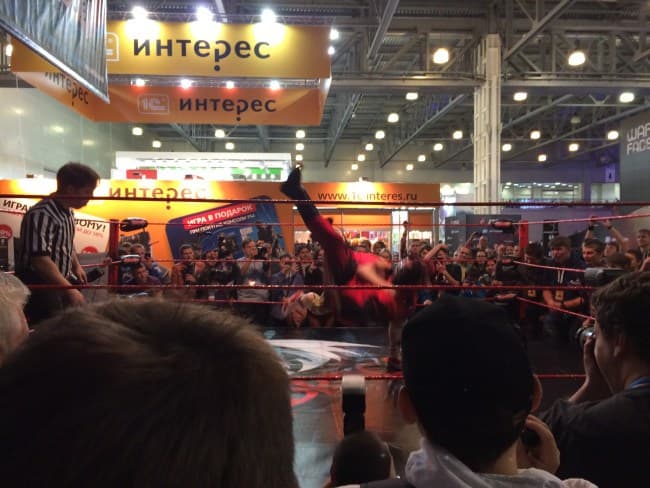 Свой зал компания Microsoft делила с Wargaming и производителями компьютерного «железа». Самым привлекательным неожиданно оказался стенд Defender. Рядом с ним в промежутках между громогласным советским маршем из Red Alert 3 проводилось реслинг-шоу.