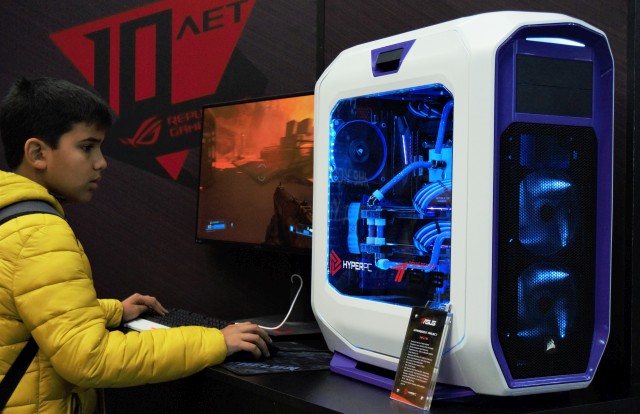 Игр на выставке представлено мало, и пустующее пространство заполнили производители железа. Огромные стенды Asus, Gigabyte, Intel, MSI, Lenovo, где можно найти самые удивительные игровые ноутбуки, мониторы и моддинговые PC. Множество стендов производителей узкоспециализированных комплектующих и периферии: твердотельные накопители Plextor, гарнитуры Sennheiser, клавиатуры и мышки Tesoro и Cooler Master. Любопытных моделей очень много, и всё можно посмотреть, потрогать, послушать.