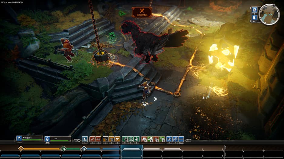 Герои сталкиваются с превосходящими силами противника на небольших аренах, и приходится следить за передвижением врагов, внимательно смотреть, в какой момент Кипуна или Топи получают повреждения, и постоянно думать, как надо реагировать в той или иной ситуации. Обстоятельства вынуждают и с группой разбойников разбираться, и от метких выстрелов лучников уклоняться. В распоряжении парочки довольно много боевых навыков. Здоровяк представляет собой типичного воина и раздаёт мощные удары, а его напарница испепеляет неприятелей магией огня. Само собой, перезарядка умений занимает время.