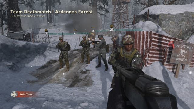 Мультиплеер Call of Duty: WWII — это аттракцион на тему Второй мировой, а не попытка воссоздать атмосферу реальных боевых действий. В самом начале карьеры вам необходимо выбрать протагониста. Им может быть хоть мужчина арийской внешности, хоть чернокожая женщина. Шутка в том, что именно этот протагонист впоследствии будет участвовать в боевых действиях за все стороны, просто меняя форму. Более того, перед началом раунда все 12 участников матча представлены союзниками, но через несколько секунд половина из них переодевается в форму вермахта.