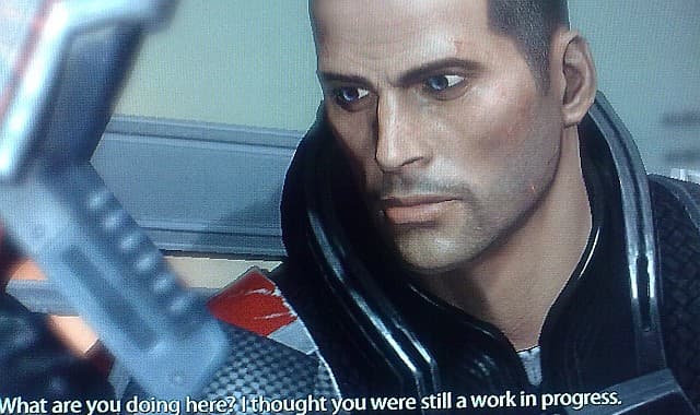 В версии для Xbox 360 у Шепарда почему-то светятся глаза. Кожа людей не отражает свет ламп, броня тусклая и «плоская».