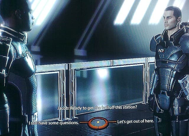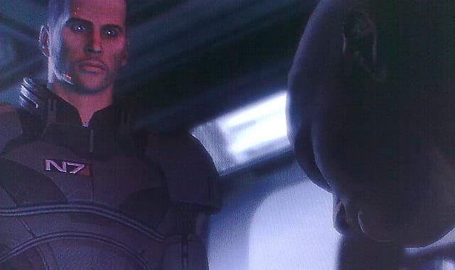 В демо-версии Mass Effect 2 представлено два уровня. Самое начало с длинным вступлением и обучением, плюс одна боевая миссия, вырванная из контекста игры. Мы параллельно запустили игру на двух платформах и сравнивали, переключаясь от одной версии к другой. Обе консоли подключены по HDMI кабелю, настройки телевизионного изображения одинаковые. Bioware не соврали, заявивив, что Mass Effect 2 для PS3 использует более продвинутую версию движка. Разница в изображении заметна сразу, особенно в динамике, хотя и скриншоты позволяют оценить улучшенную работу со светом. Также заметно, что доработали шейдерные эффекты. Броня благодаря этому выглядит более рельефной и красивой. Однако все модели и текстуры остались теми же самыми. Загрузка уровней (версия для Xbox 360 установлена на жесткий диск консоли) происходит с той же скоростью (плюс-минус одна-две секунды). Печально, сглаживание оставили такое же, как на Xbox 360 - наклонные линии состоят их довольно крупных и хорошо заметных «лесенок». Рассмотрим на примерах. Мы не стали мудрить и воспользовались обыкновенным фотоаппаратом, делая снимки с экранов. Поскольку разница между версиями заключается только в освещении, качестве теней и отражающих способностей материалов, этого метода оказалось более, чем достаточно. И не серчайте за качество.