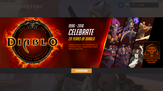 Кроме того, Blizzard поздравляет себя и всех поклонников сериала Diablo с его 20-летием. К сожалению, для Overwatch компания подготовила лишь шесть спреев с изображением героев Diablo III и один аватар в виде иконки к первому Diablo. Не густо.