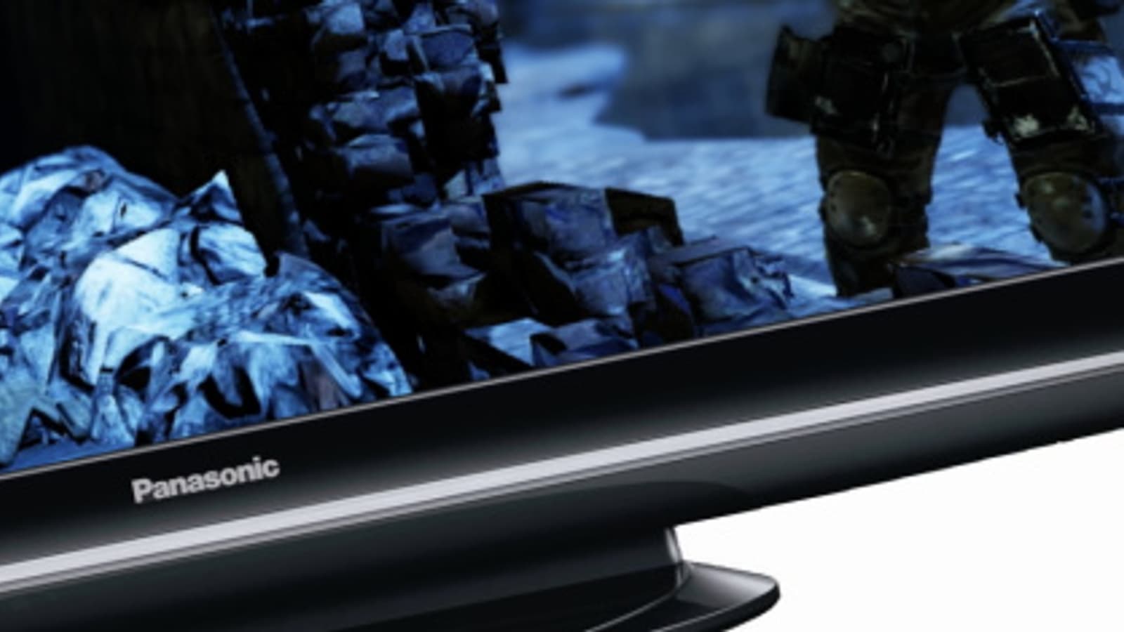 Неширокая рамка вокруг экрана изготовлена из черного пластика с зеркально-гладким покрытием не очень устойчивым к появлению царапин. В комплект поставки предусмотрительно включена специальная салфетка для безопасной чистки глянцевых поверхностей. Узкая вставка из пластика с серебристым покрытием подчеркивает черноту рамки. Плазменная панель немного утоплена вглубь и прикрыта сверху стеклянной пластиной (возможно вовсе и не стеклянной, а из пластика с твердой поверхностью). Одна из запоминающихся демонстраций состоит в том, что по экрану плазменного телевизора от Panasonic стукают увесистым стальным шариком, закрепленным на рычаге. Несмотря на явно хороший по силе удар, экран не разбивается и даже от многочисленных ударов на внешней поверхности следов не остается. Поэтому есть вероятность, что и вылетевший из рук геймера акселерометрический манипулятор не повредит экрану. Внешняя поверхность экрана немного бликует, сама же плазменная панель имеет темно-серый цвет и достаточно эффективно поглощает свет, что положительно сказывается на контрасте изображения даже в яркоосвещенном помещении. В нижней части фронтальной рамки находятся выключатель питания, ИК-приемник, датчик освещенности и индикатор состояния (неяркий, светится красным в режиме ожидания и зеленым — при работе).