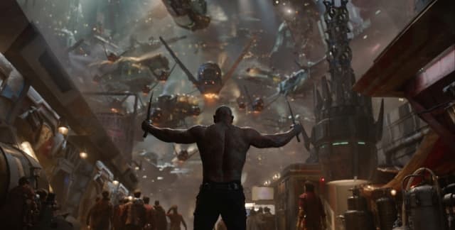 Основа тут проста и состоит из фанатичного злодея и могущественного артефакта, а также трансформации отряда алчных и глуповатых героев в защитников галактики. Но мощь ленты кроется в персоналиях, бешеной динамике, отлично подобранной музыке и грамотно расставленных приоритетах. Там где история грешит штампами на выручку приходит юмор или зрелища.