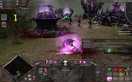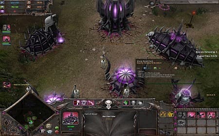 Развитие базы ведется по стандартной для остальных рас схеме, сюрпризом стало только отсутствие оборонительных турелей, из-за чего строения остаются открытыми для нападения извне. Дизайн Темных Эльдаров полностью соответствует их извращенным натурам: шрамированные рабы ковыляют в цепях, здания и техника украшены стальными шипами и черепами — точно согласно букве настольного первоисточника.