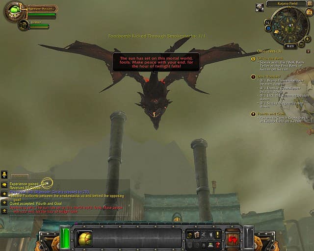 Хороший пример в этом плане - переделка береговой зоны Darkshore вблизи мирового дерева Therdassil. Данная территория в оригинальной игре была крайне скучна, неинтересна и однообразна. Задания сводились к простому истреблению монстров, не было свойственного большинству локаций World of WarCraft мини-сюжета, за миссии же давали совсем скудные награды. В Cataclysm Darkshore заиграл новыми красками. После появления Дэсвинга было уничтожено основное местное поселение. Ночные эльфы понесли огромные потери. Главные задания здесь теперь вертятся вокруг спасения жертв налета Черного Дракона и успокоения обезумевшей фауны, а так же усмирению активизировавшихся под шумок демонов.Новые миссии стали действительно новыми и разнообразными. При этом теперь не надо упорно долбить монстров тысячами, ожидая интересных заданий лишь к поздним уровням. Так, в Redridge Mountains, где люди ведут борьбу с орками клана Blackrock, каждая миссия или их цепочка становится уникальным приключением. Например, для начала нам надо освободить бывалых бойцов, попавших в плен к зеленокожим. Затем, мы со всей этой бандой начинаем уничтожать орков десятками. При этом каждый вояка не прочь кинуть действительно смешную шуточку на тему «есть еще порох в старых пороховницах». После этого составляем план нападения на вражеские укрепления. Нужно сделать разведку базы противника. Для этого собираем листья и лисьи фекалии, делаем из этого маскировку и проникаем на территорию врага. Потом нам показывают красивую сцену бомбардировки укреплений орков и... выдают гномий танк, на котором мы косим зеленых бугаев сотнями! А заканчивается цепочка эпической битвой с громадным драконом.
