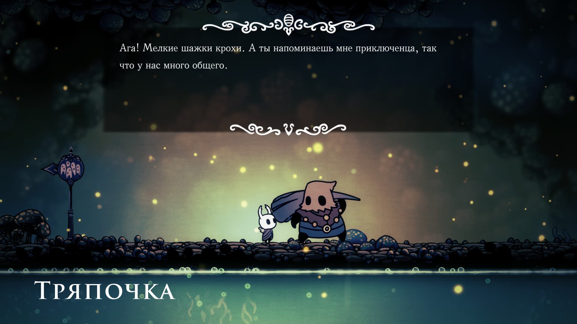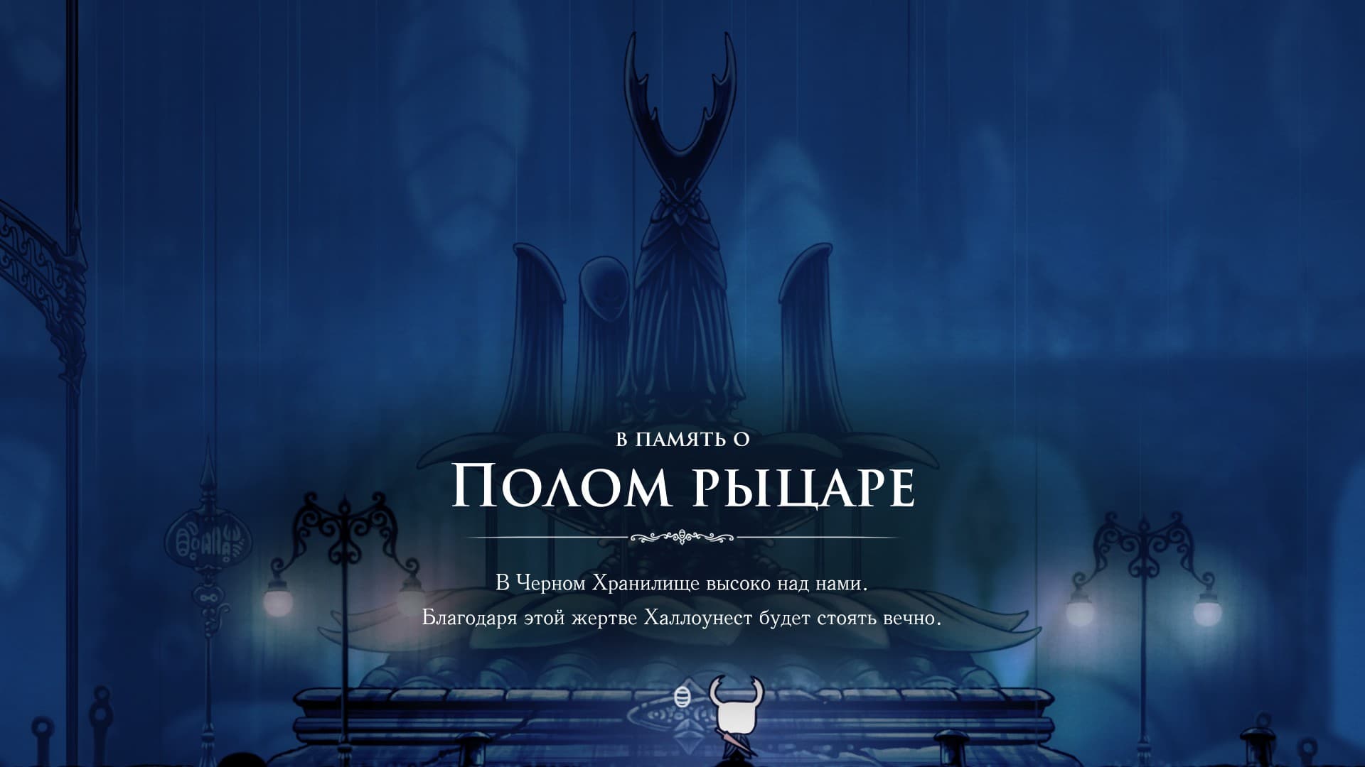 The dead kingdom reflects the essence of the Knight: an emotionless hero who arrives in Hallownest to fight the plague. However, the lack of emotions does not mean that the Knight has no character: he challenges some bosses to a fight and voluntarily saves Hornet's life. The survivors he meets along the way perceive him as a person and make him a silent listener to their stories.