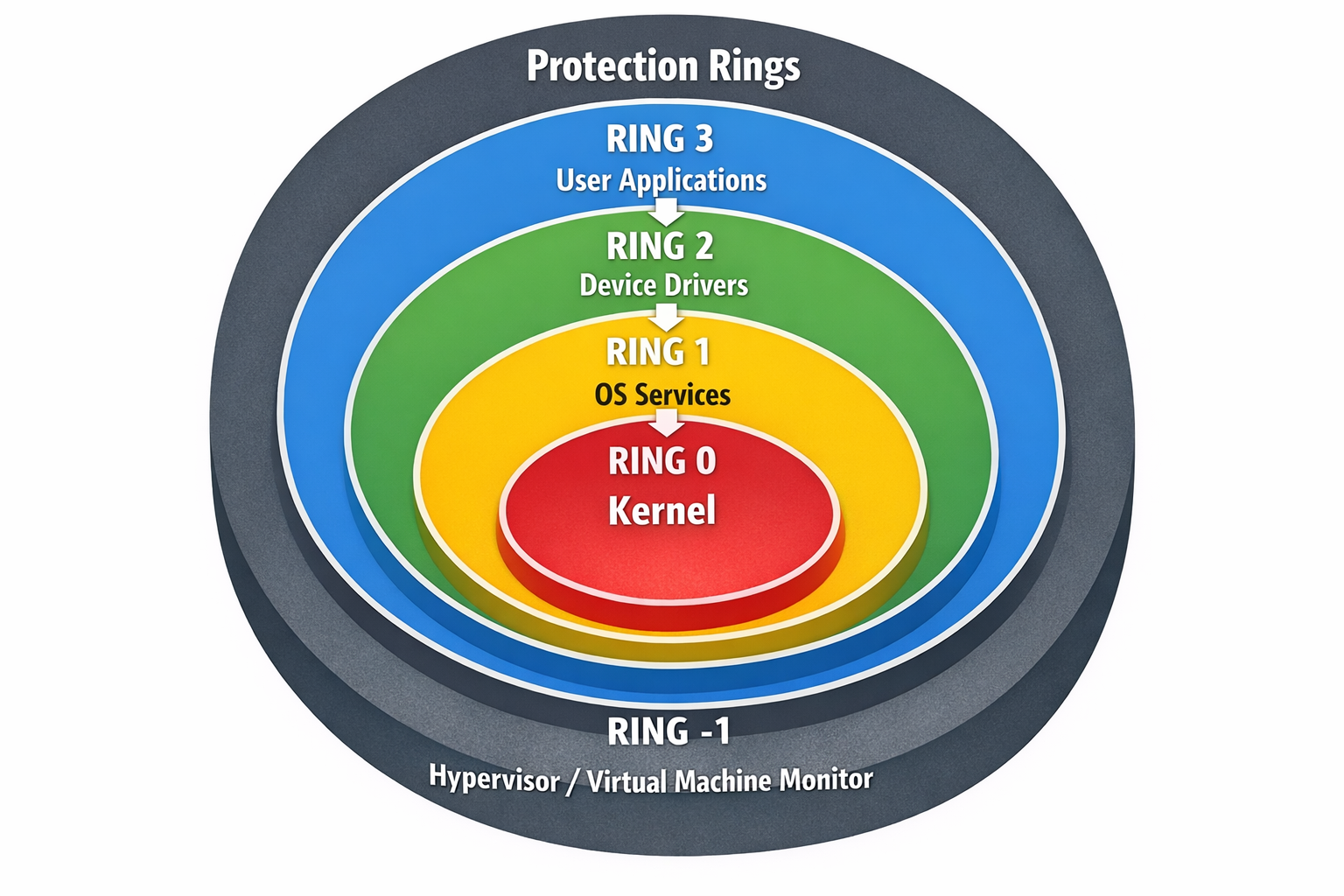From a security point of view, the hypervisor is considered a layer of increased trust, where in the rank of "protection rings" it occupies the highest level - "Ring -1". It manages memory, access to devices, and processor operating modes. If there is an error in the hypervisor or if it is initially malicious, the consequences will be more severe than from a normal virus infection.